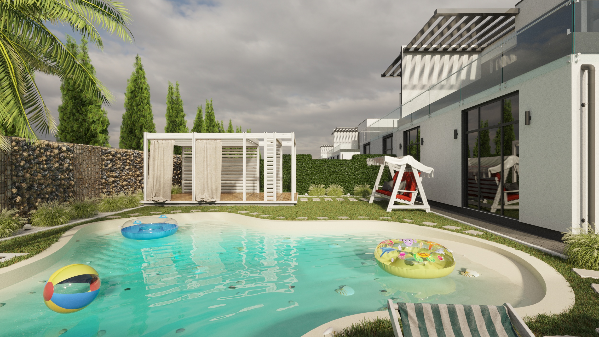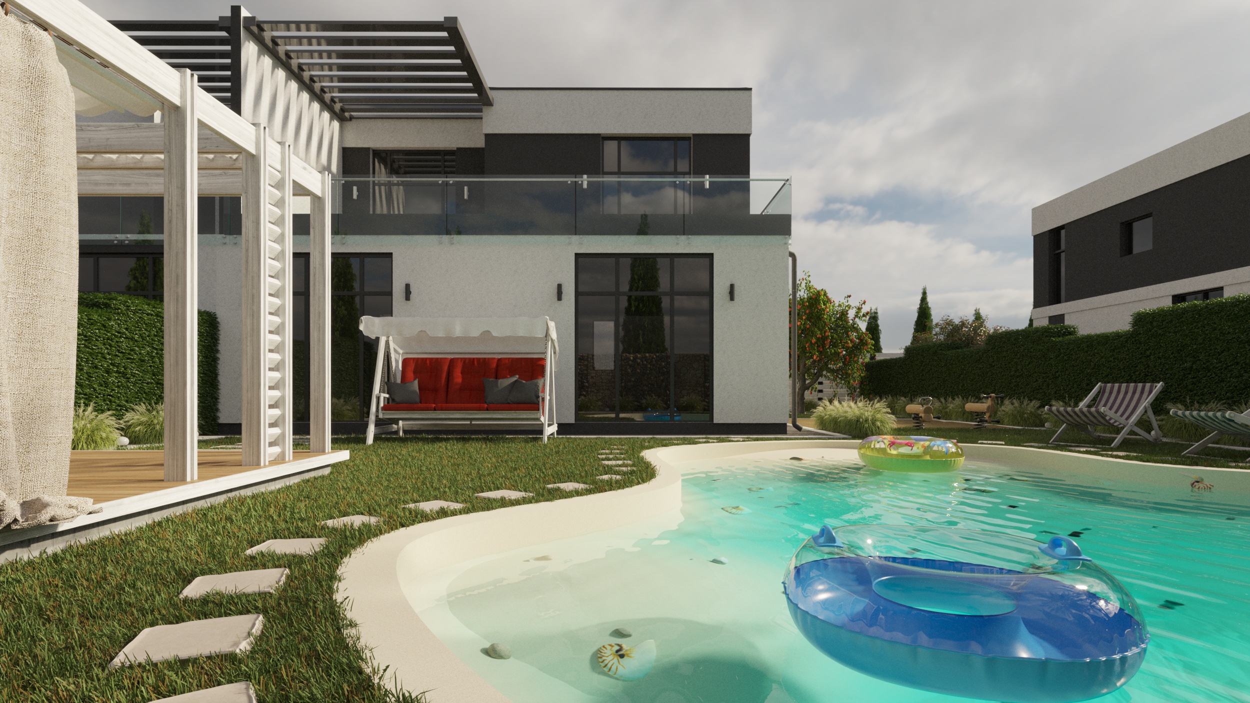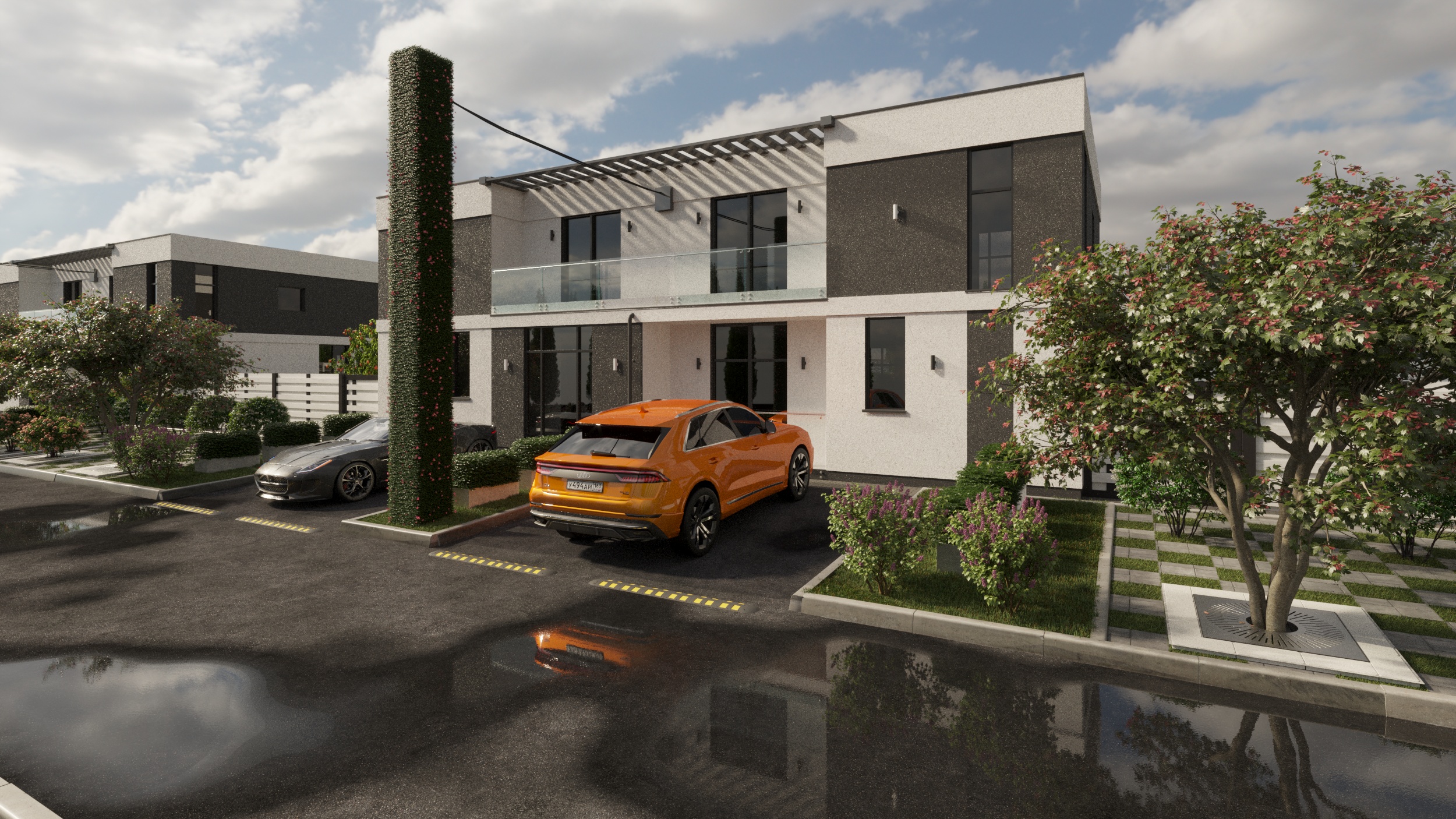 Эскиз таунхауса и поэтажные планы