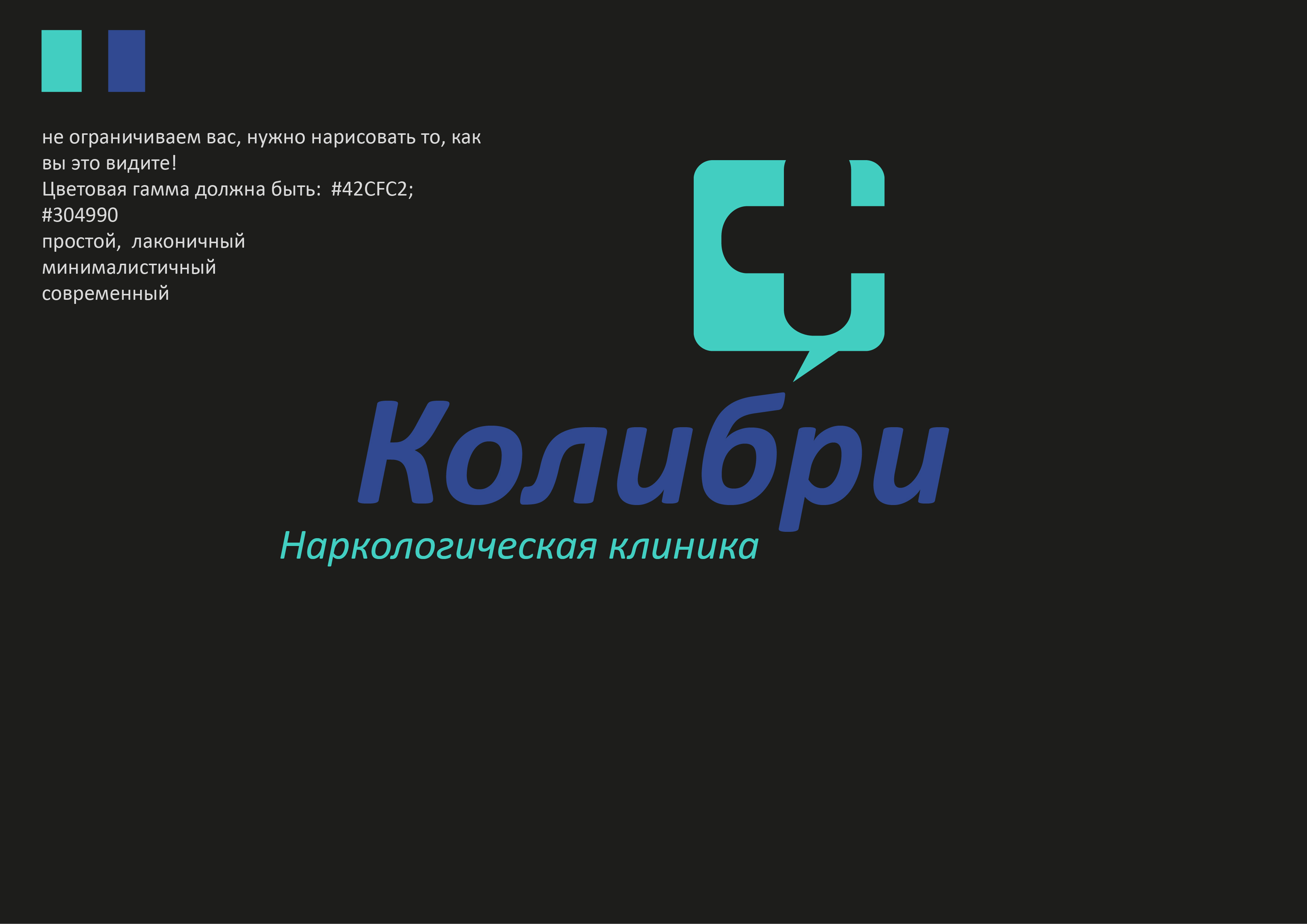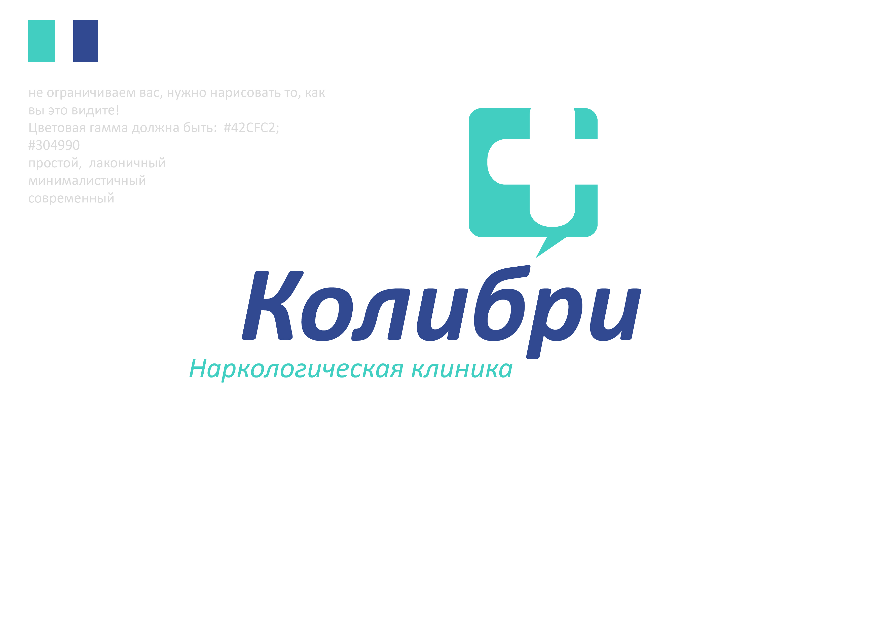 - Цветовая гамма должна быть: #42CFC2; #304990