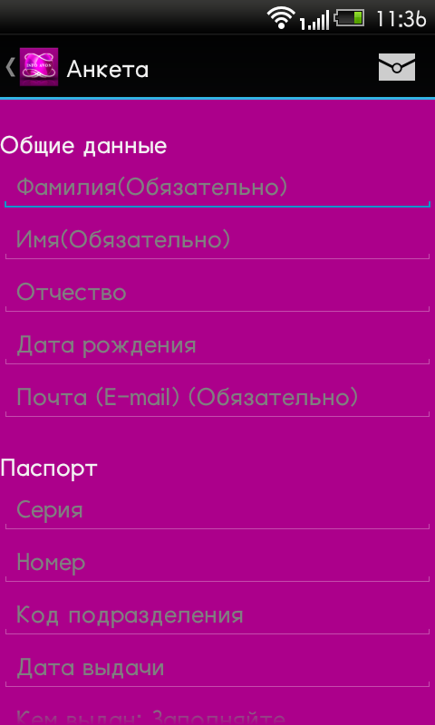 Анкета должна соответствовать анкете на странице: