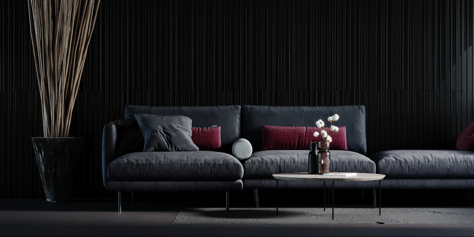 Интерьер гостиной, кухни и спальни (день и ночь)