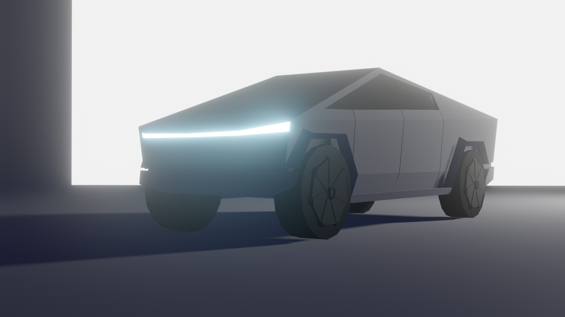 Простенькая Лоу-поли модель Теслы Кибертрак, выполненная в Блендере