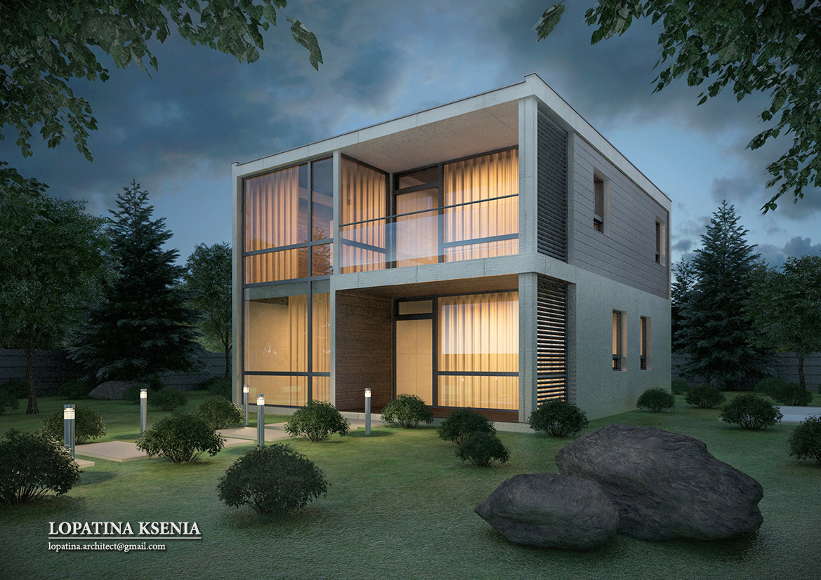 Визуализация экстерьера. Современный коттедж.