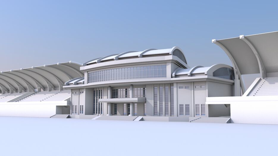 [h3]3Д-визуализация ипподрома[/h3] Примеры работы по 3Д-визуализации здания и трибун ипподрома с чертежей в AutoCAD.