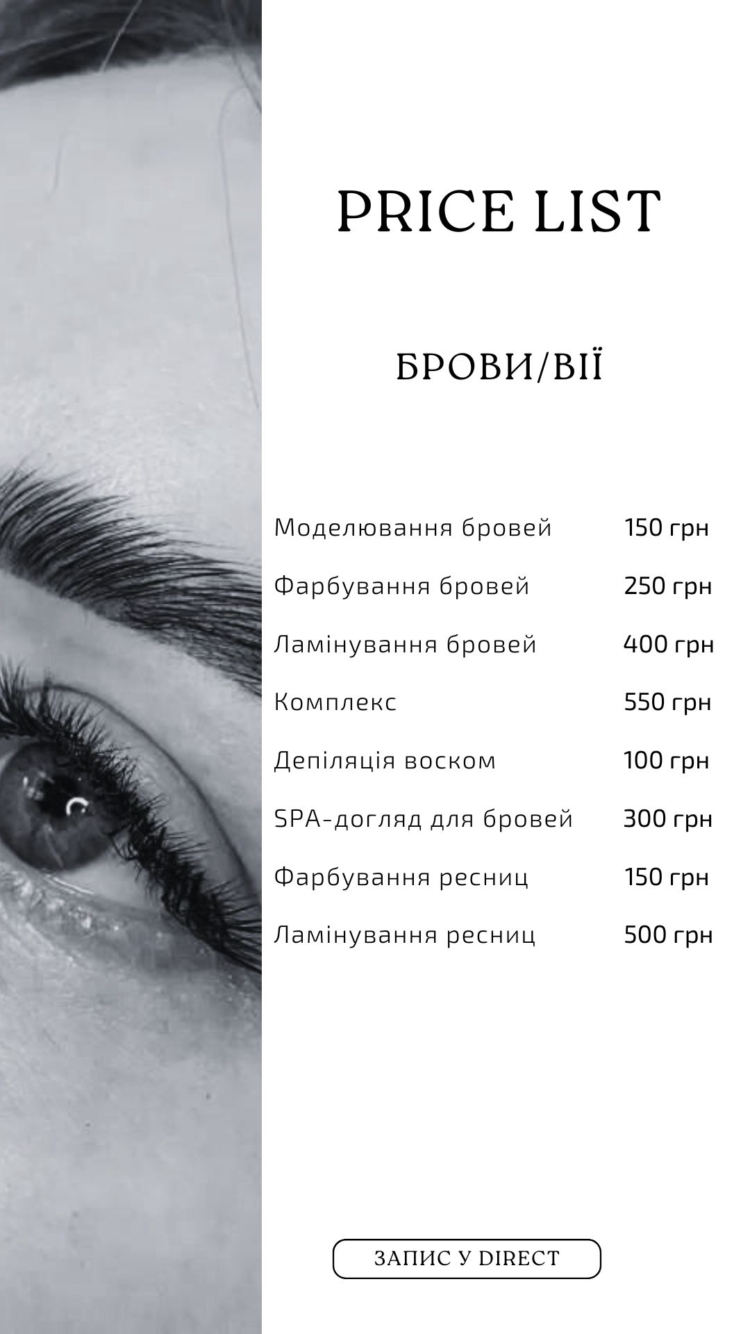 Прайс лист для Инстаграм девочки бровиста