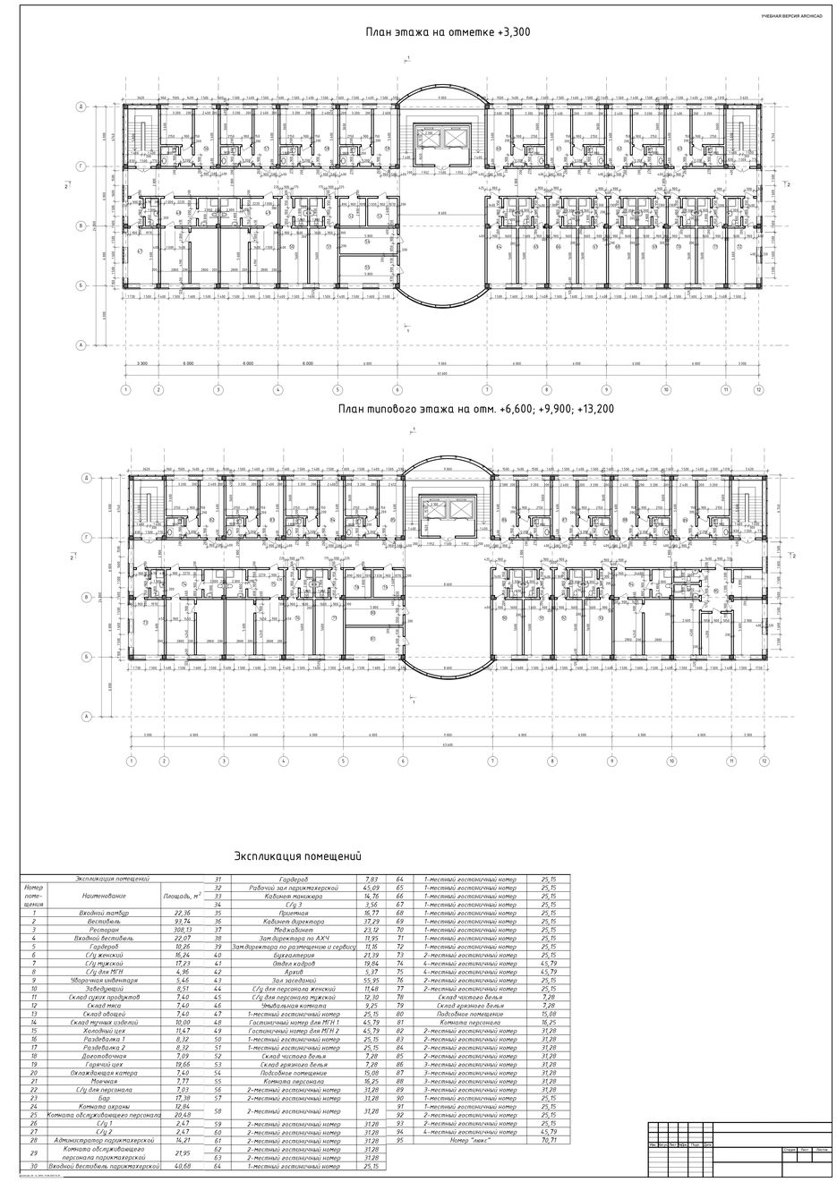 Пример выполненного чертежа в программе Архикад.