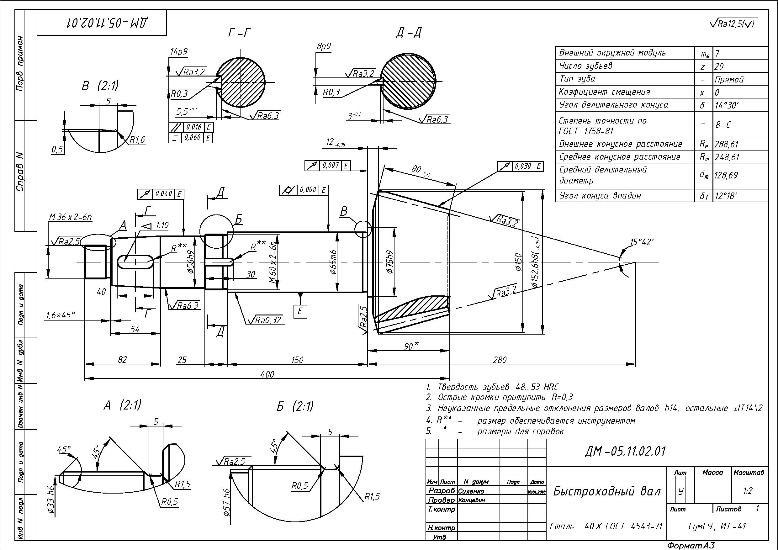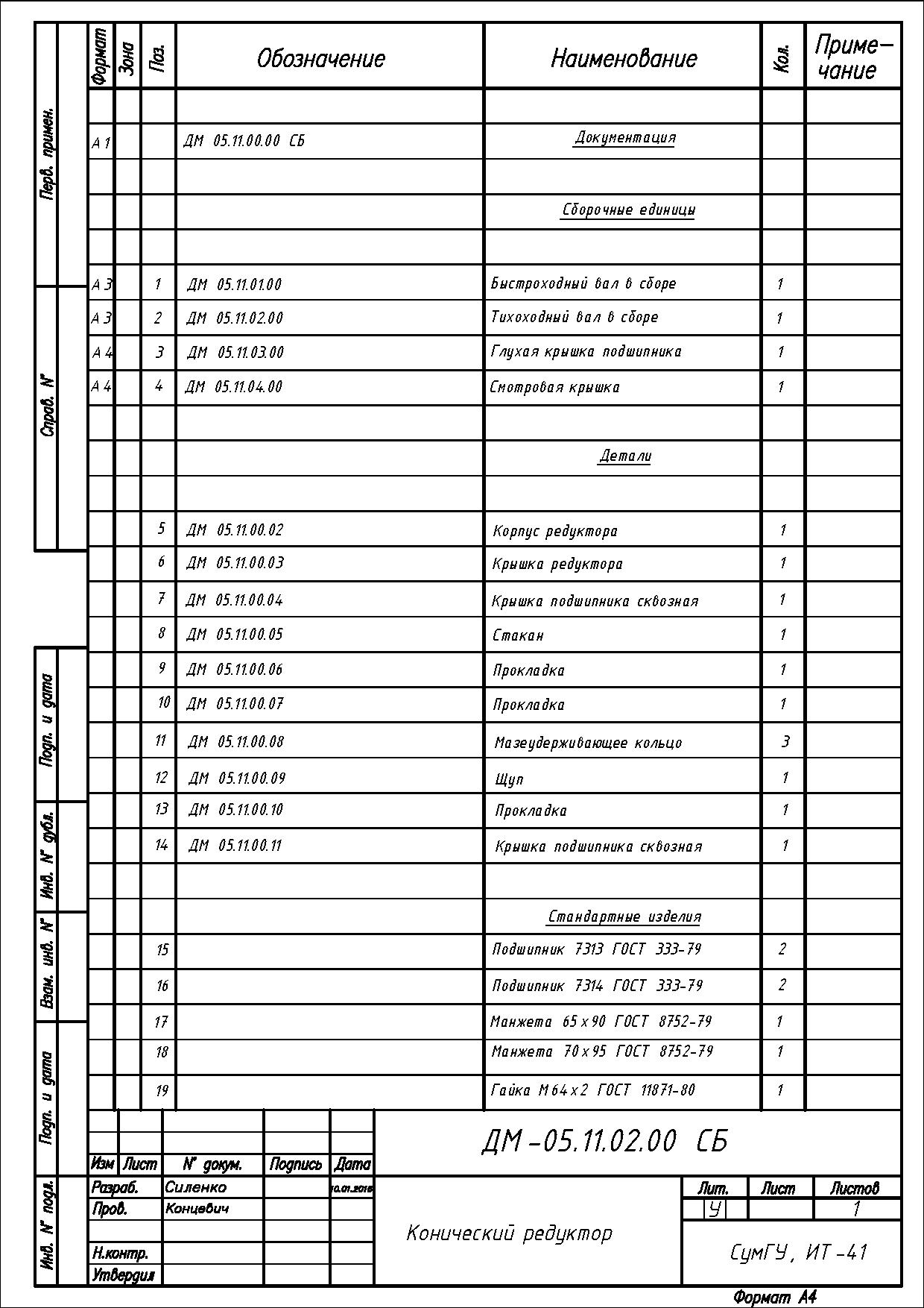 В программном продукте AutoCad реализованы чертежи редуктора конического одноступенчатого. Представлены такие чертежи в формате ".jpg" : ведомый вал(рабочий чертеж - А3), ведомый вал в сборе(А3), ведущий вал(рабочий чертеж - А3), смотровая крышка редуктора(А4), крышка подшипника(А4), сборочный чертеж редуктора(А1), также прикреплена спецификации.
