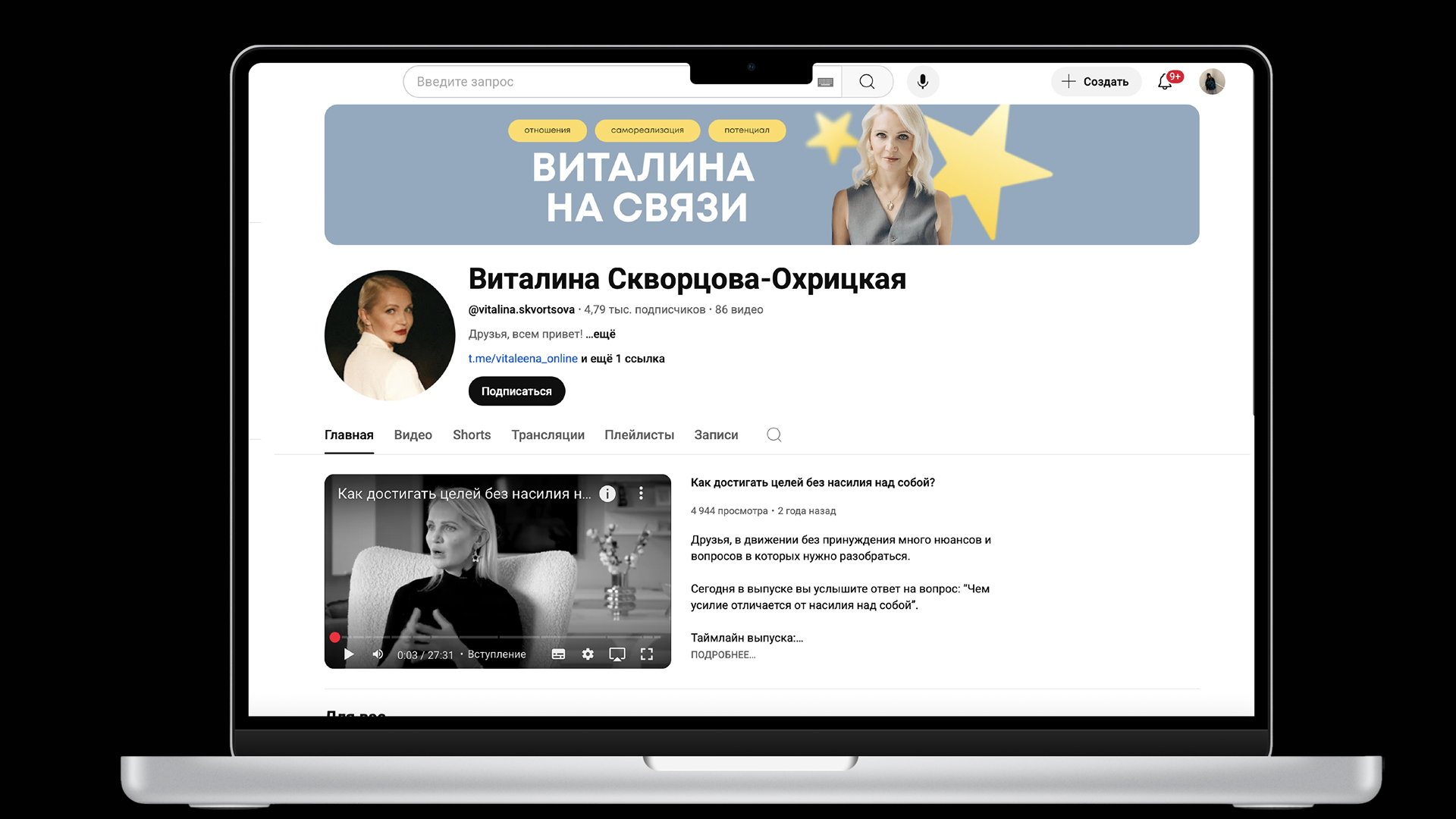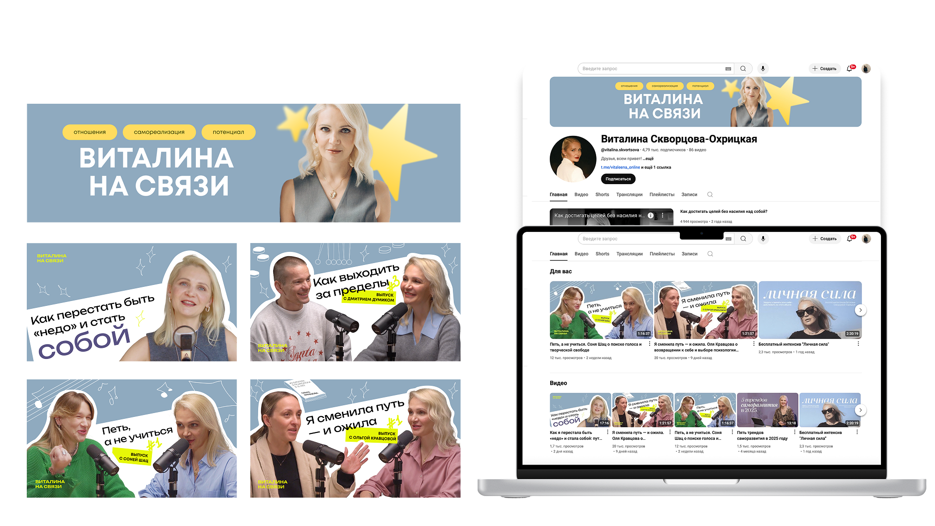 Redesign the visual identity of her YouTube channel and social media, making it more aligned with Vitalina’s brand attributes: openness, sincerity, and expertise.