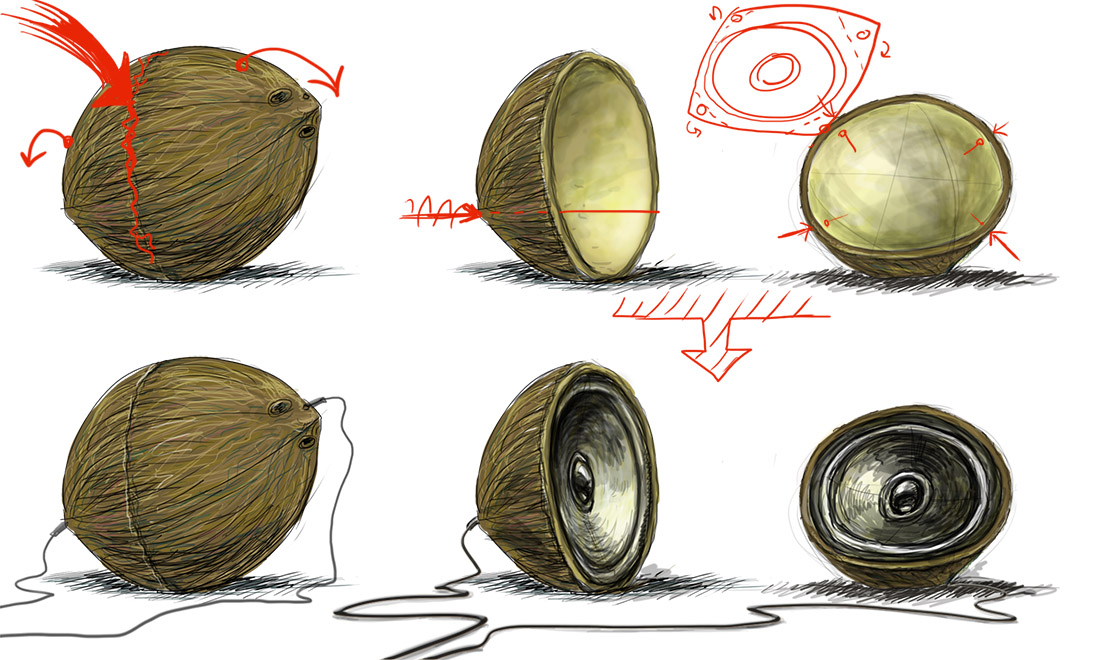 Концепт колонок для ноутбука "Кокос"