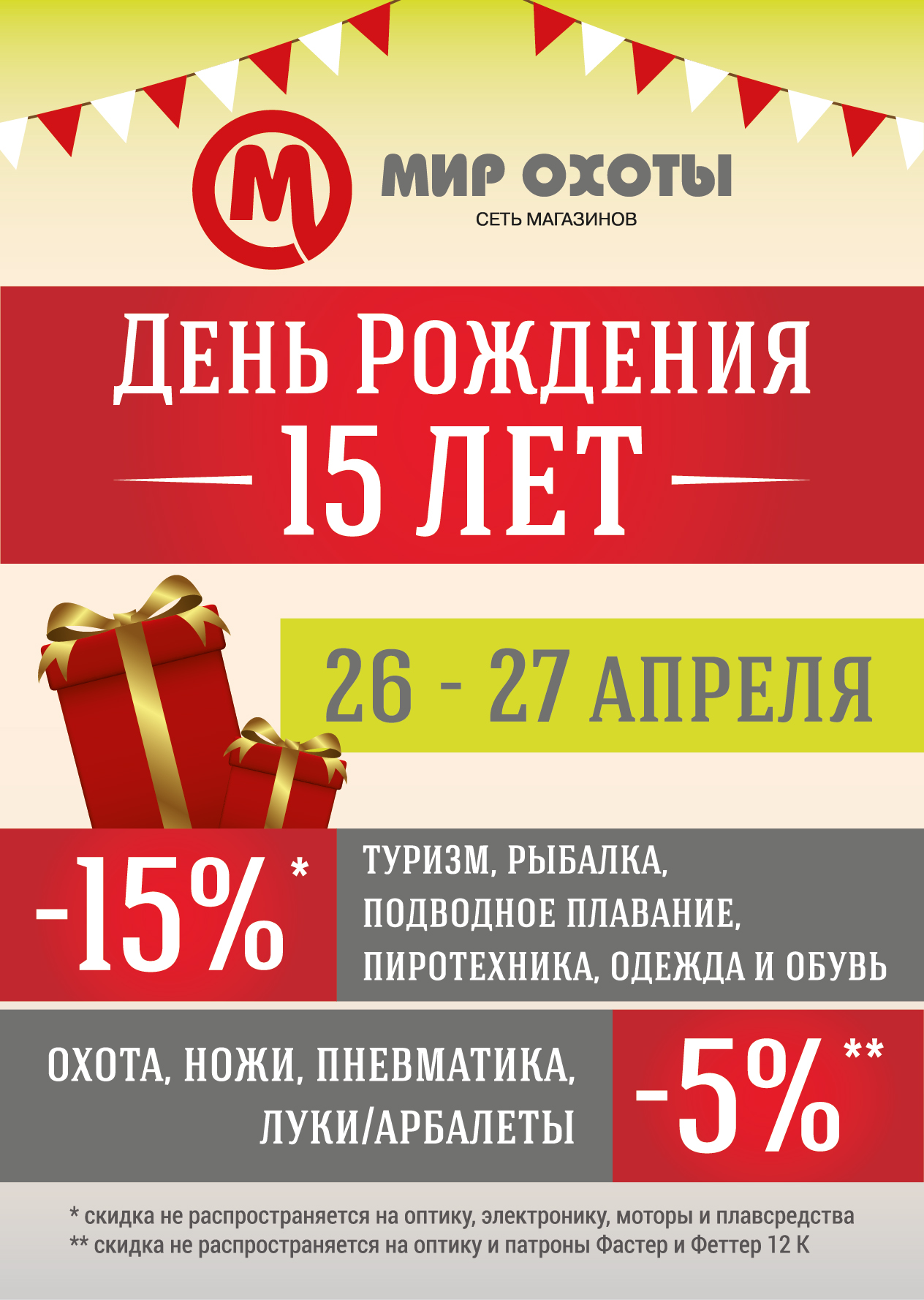 Создание листовки формата А4 к юбилею сети магазинов "Мир Охоты"
