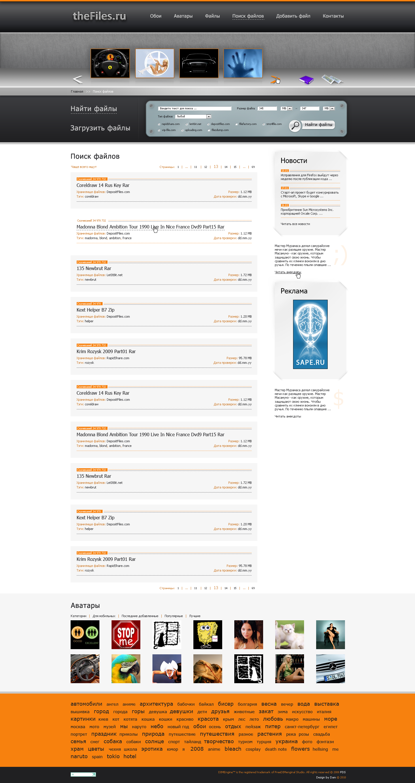 Обои, аватары, файлы... Список файлов на скачку