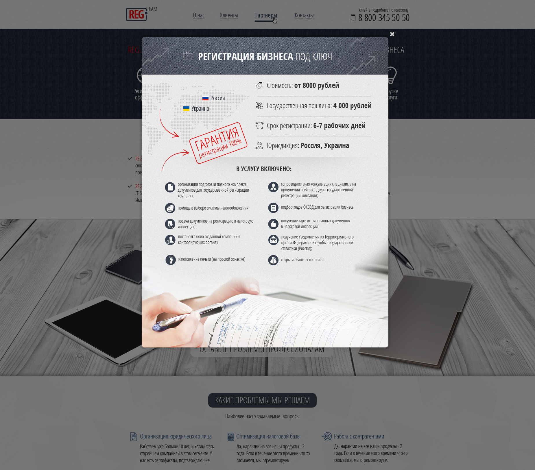 Дизайн landing page для компании Reg.Team