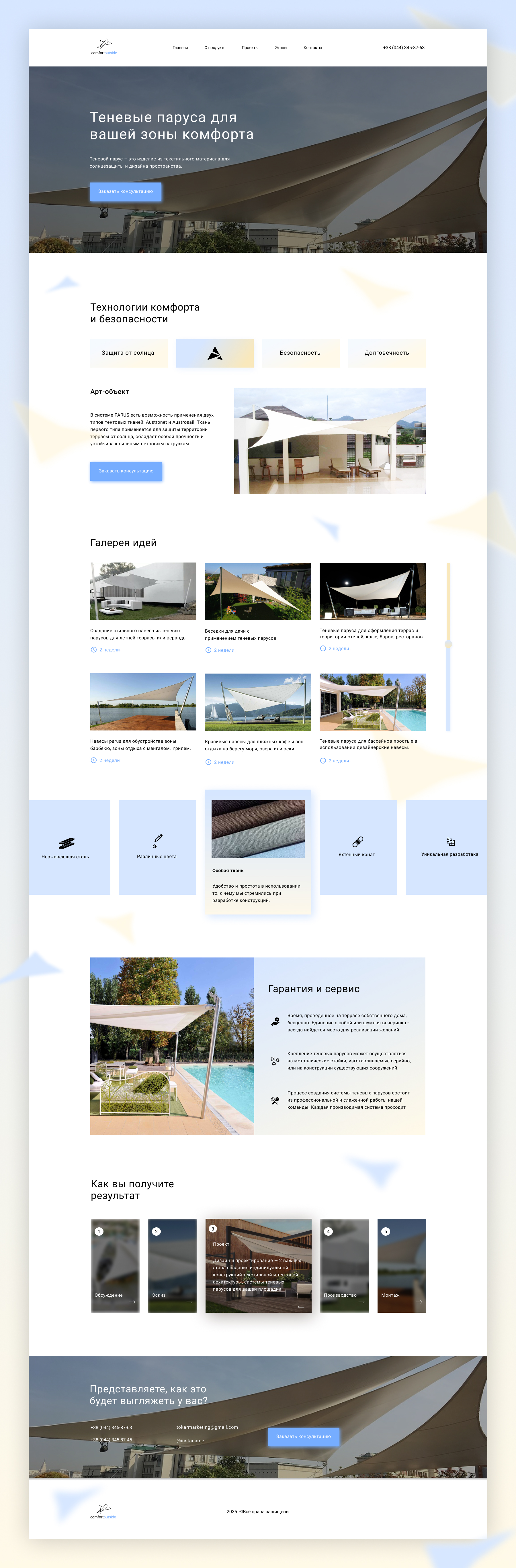 Дизайн landing page "Теневые паруса"