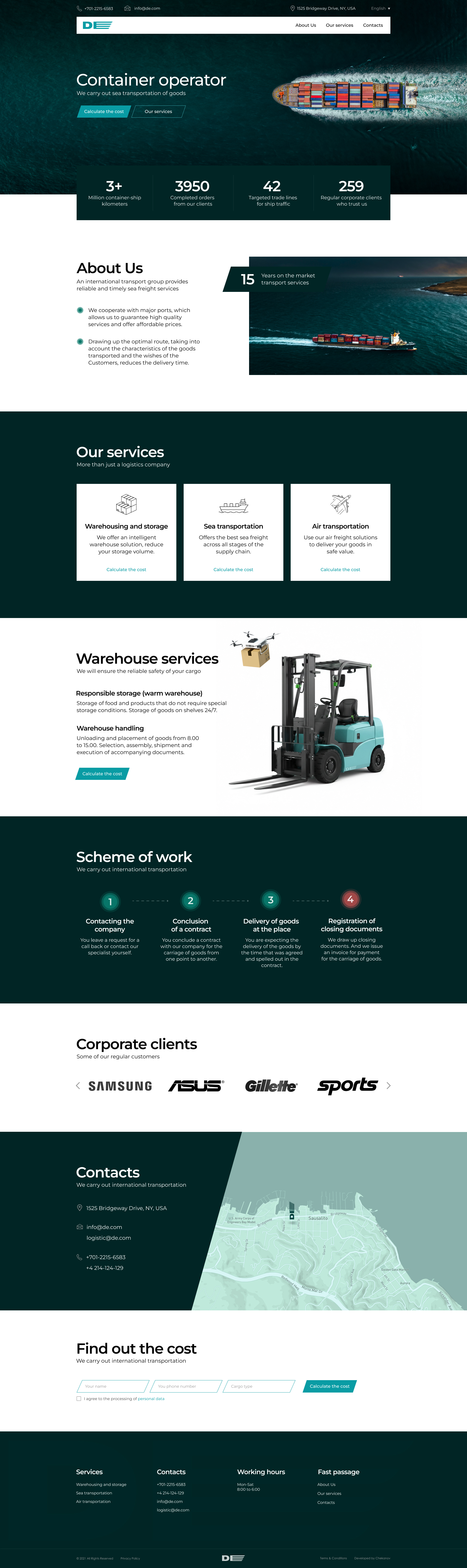 Дизайн одностраничного сайта в Figma для логистической компании
