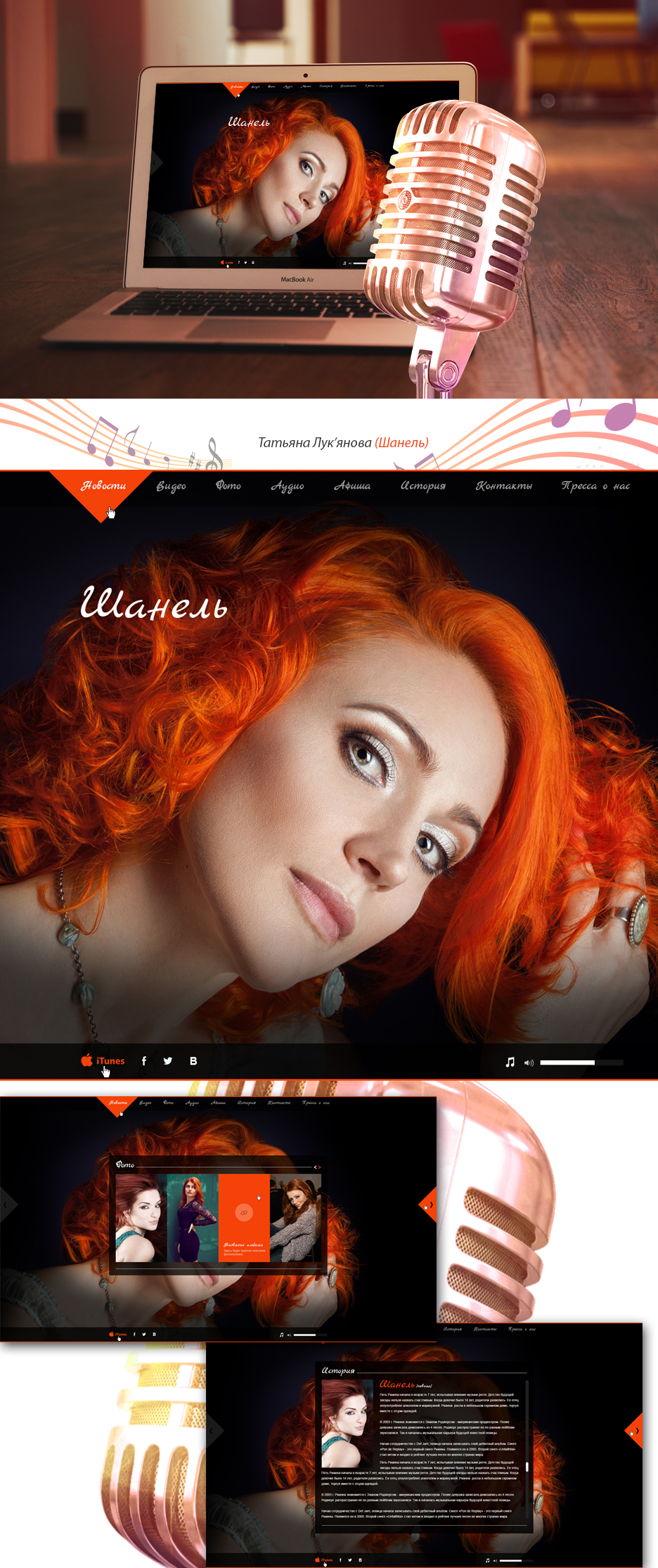 Дизайн сайта певицы Шанель http://www.chanel-music.ru/