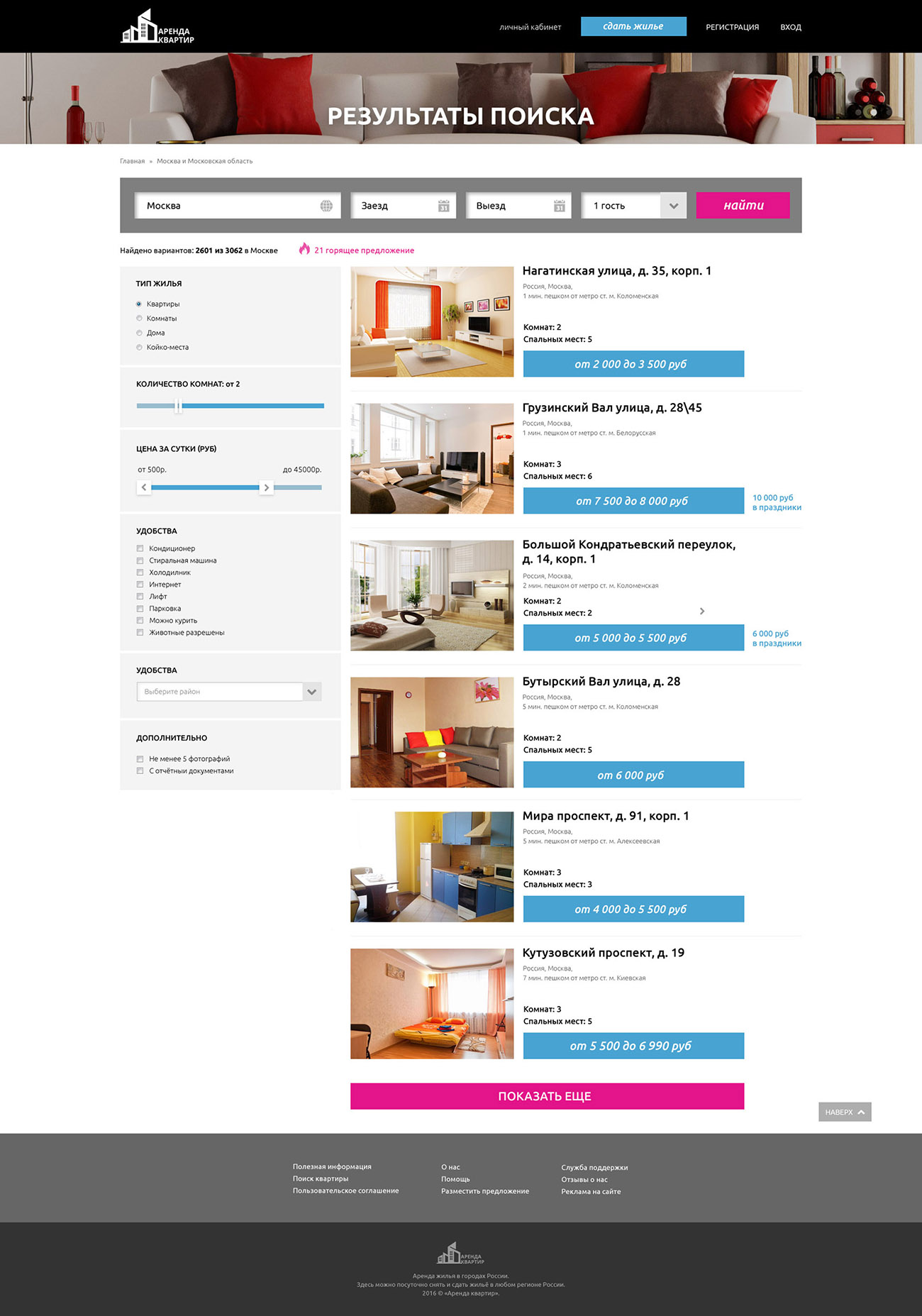 Дизайн сайта по аренде квартир