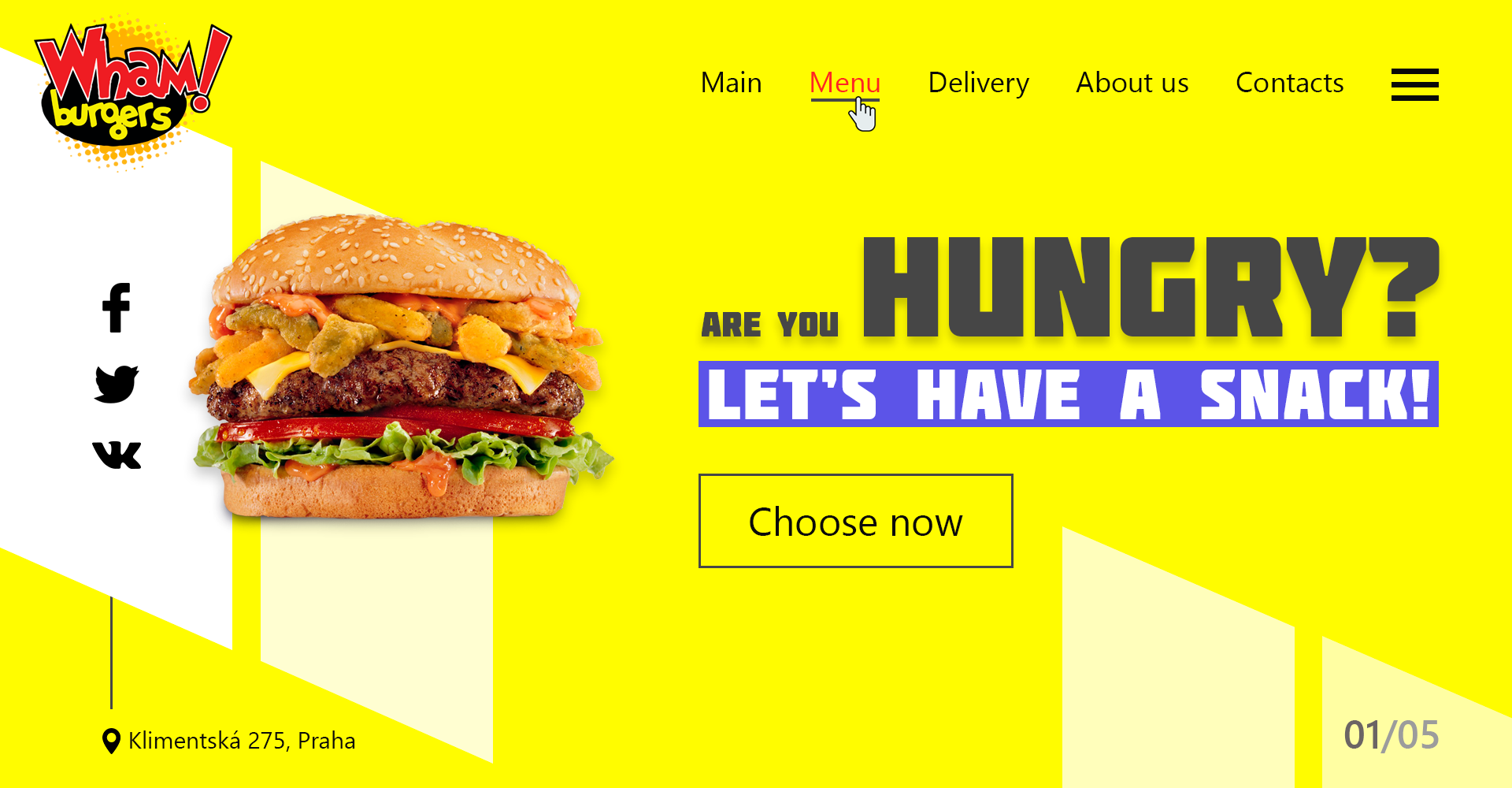 Главная страница бургерной в Праге.