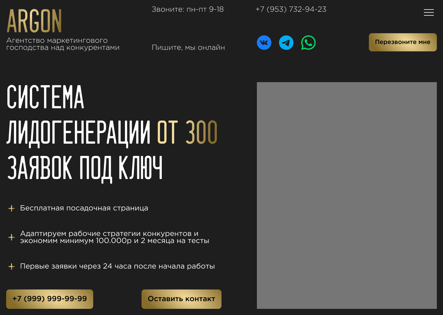 дизайн первого блока для сайта по системе лидогенерации