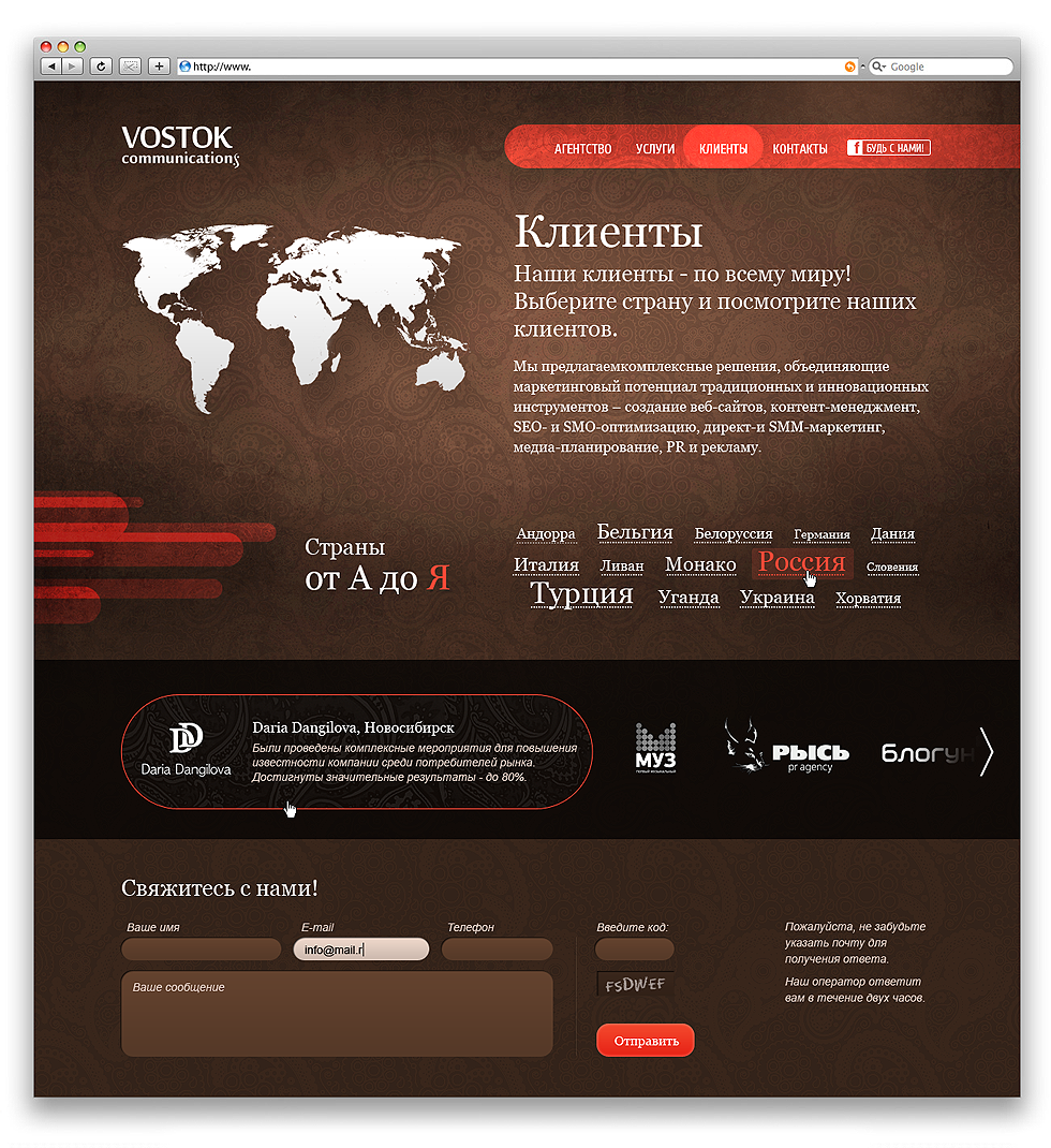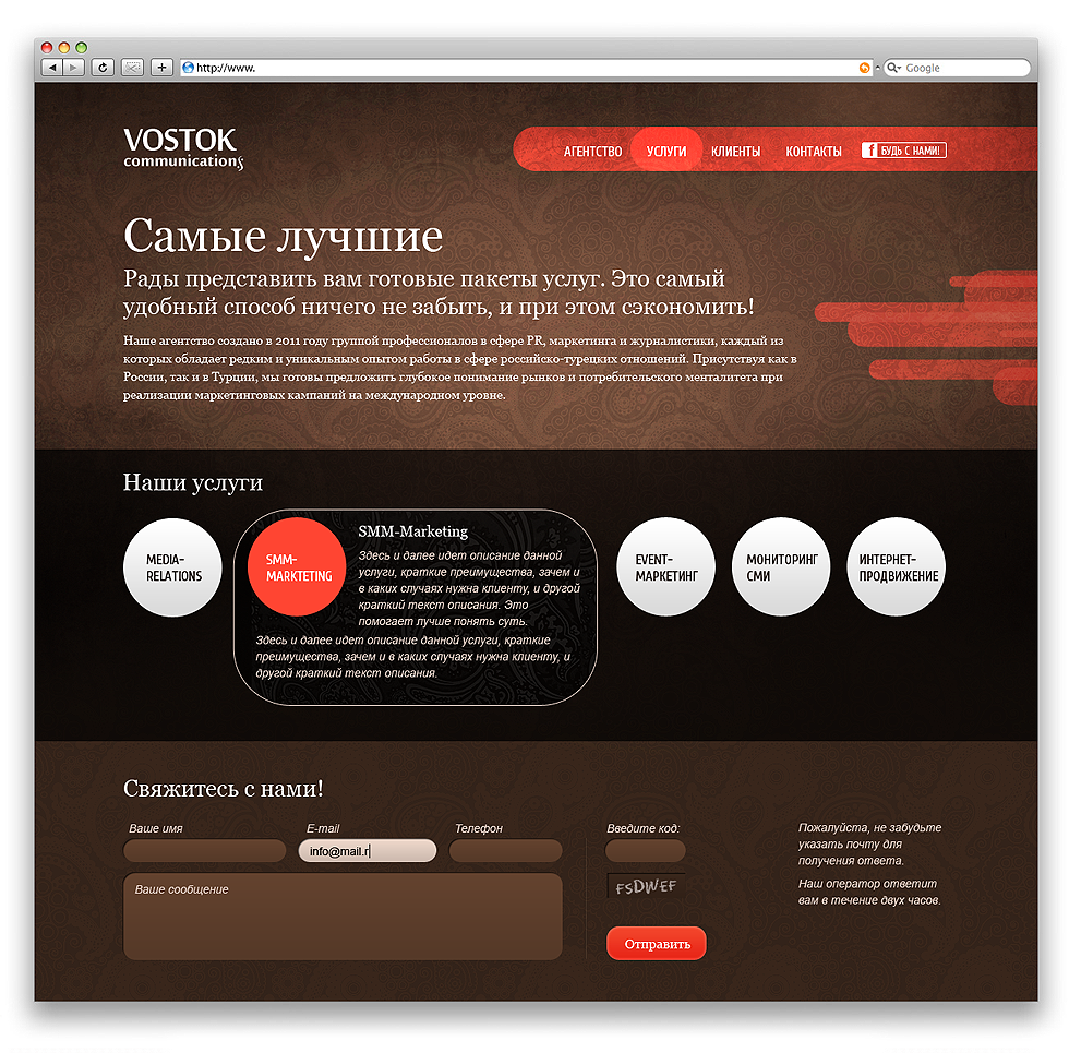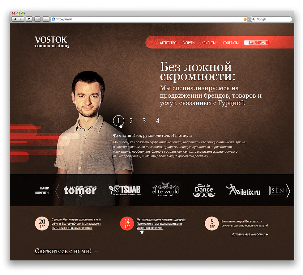http://vostokom.ru Компания специализируется на продвижении брендов, товаров и услуг, связанных с Турцией