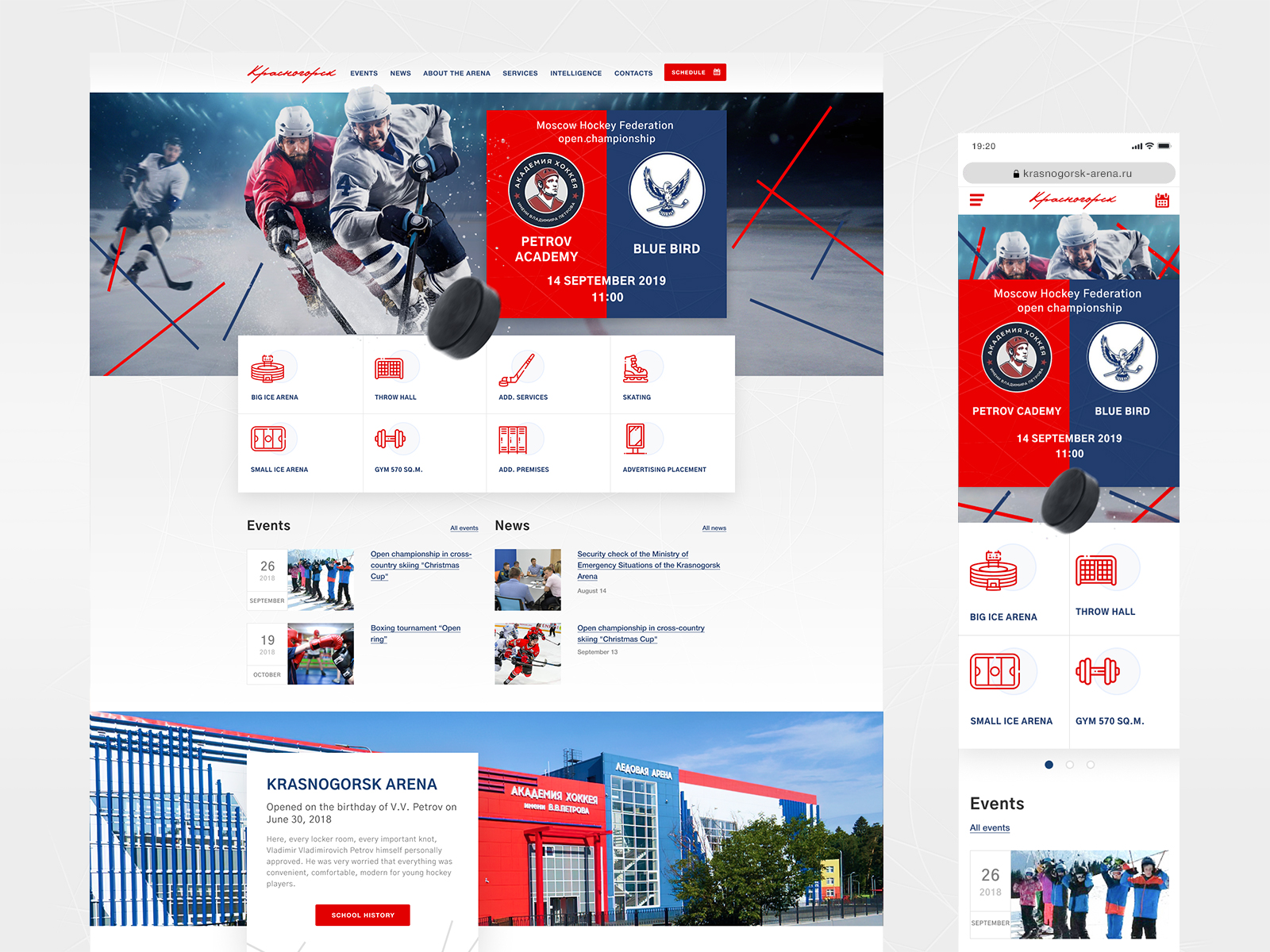 Вебсайт для спортивной арены в Красногорске. Проект 2019 года.