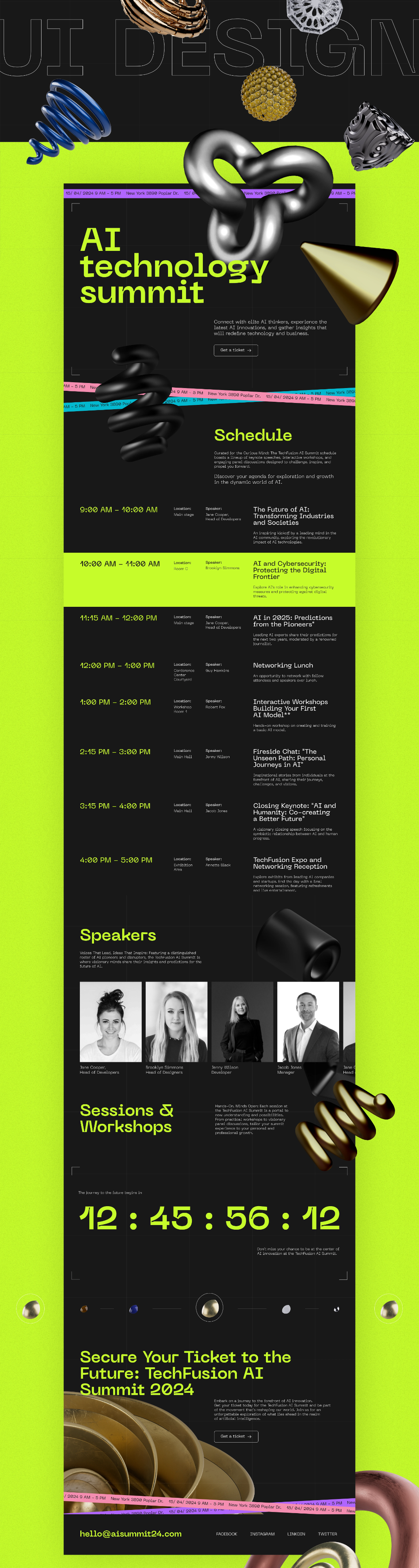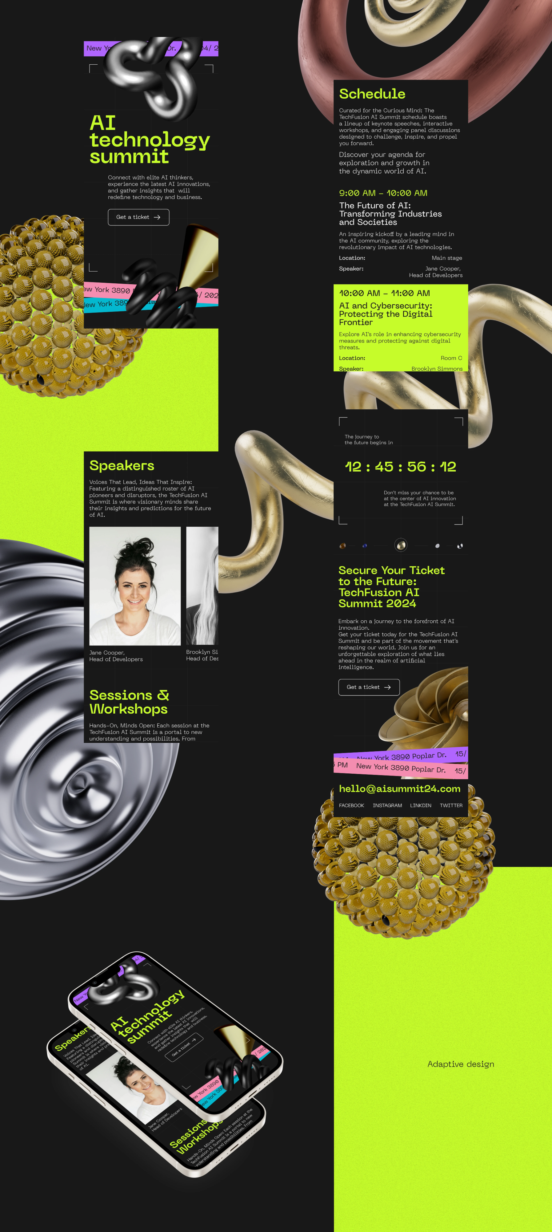 Разработать одностраничный сайт (Landing Page). Концепция в первую очередь должна строиться на типографике. Должен быть современный и свежий внешний вид. Следует добавить раздел с графиком дня на конференции.