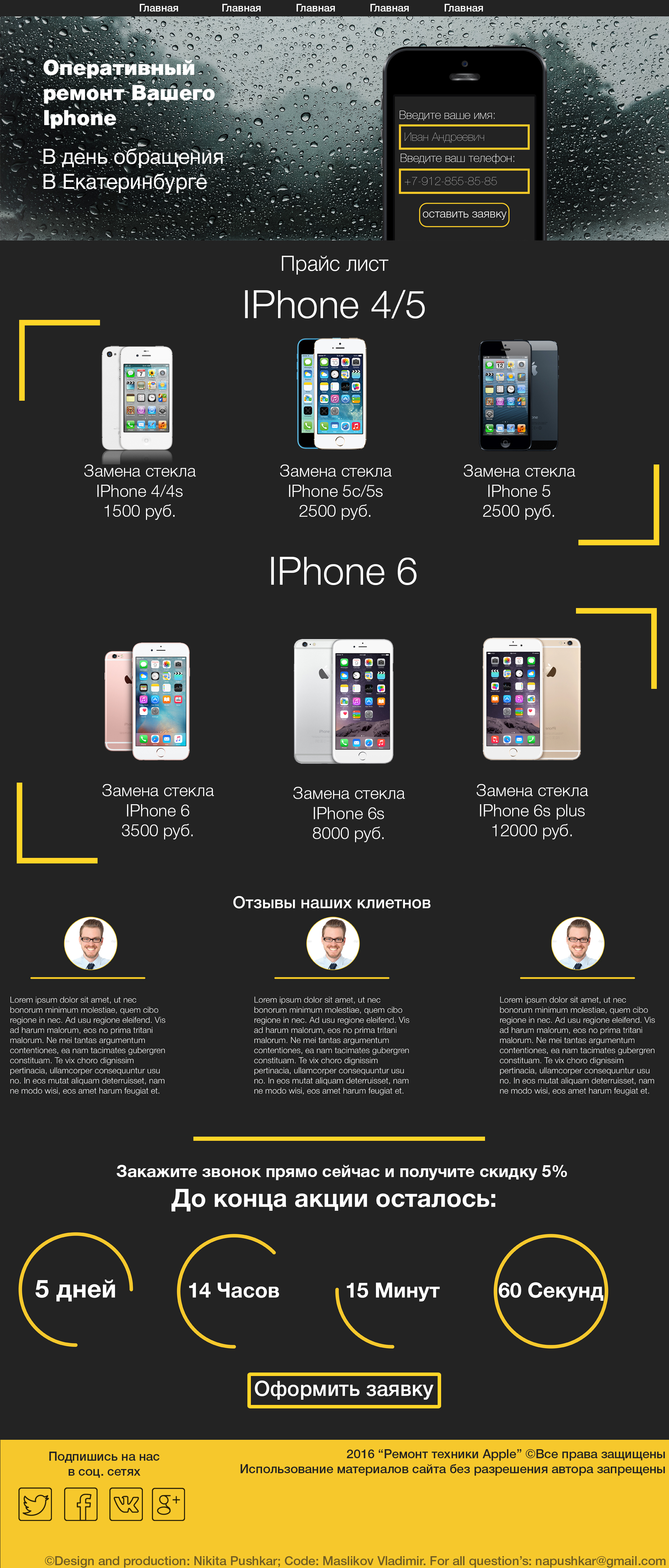 Создание LandingPage по ремонту моб. телефонов Apple IPhone.
