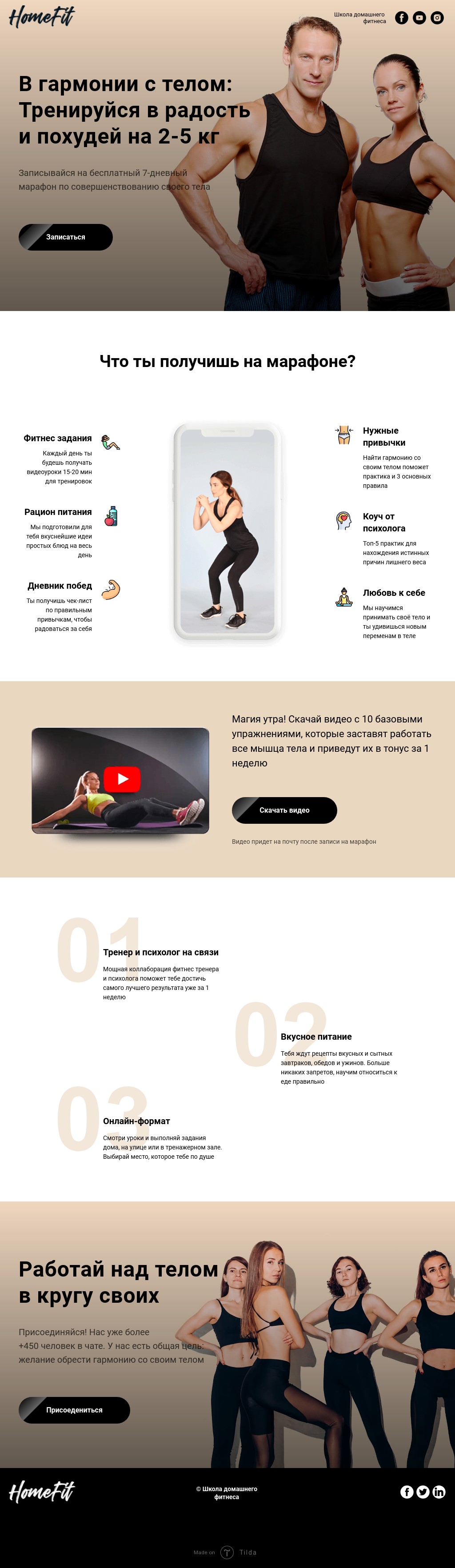 Лендинг для школы домашнего фитнеса
