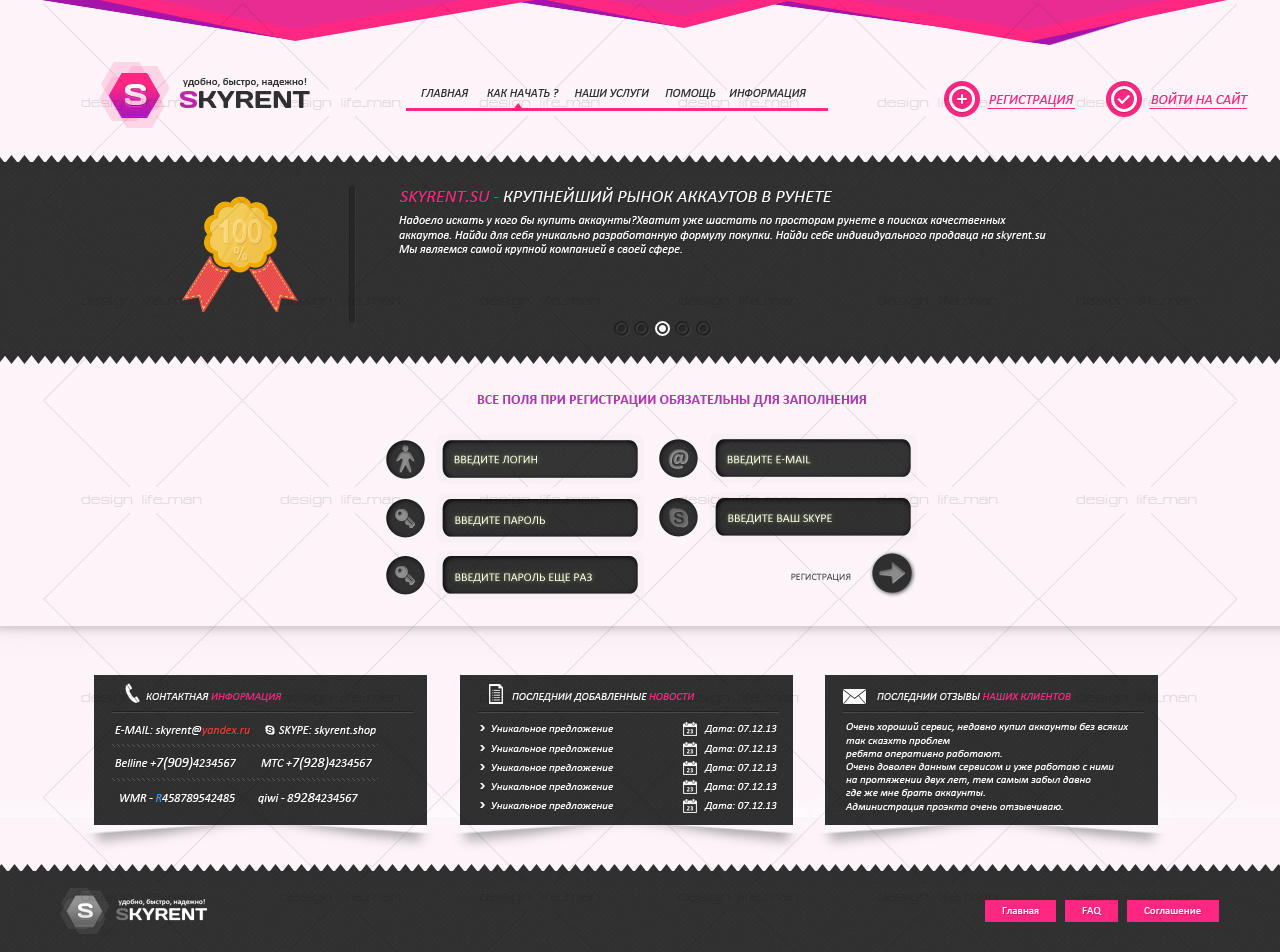 Страница регистрации для сайта skyrent.su