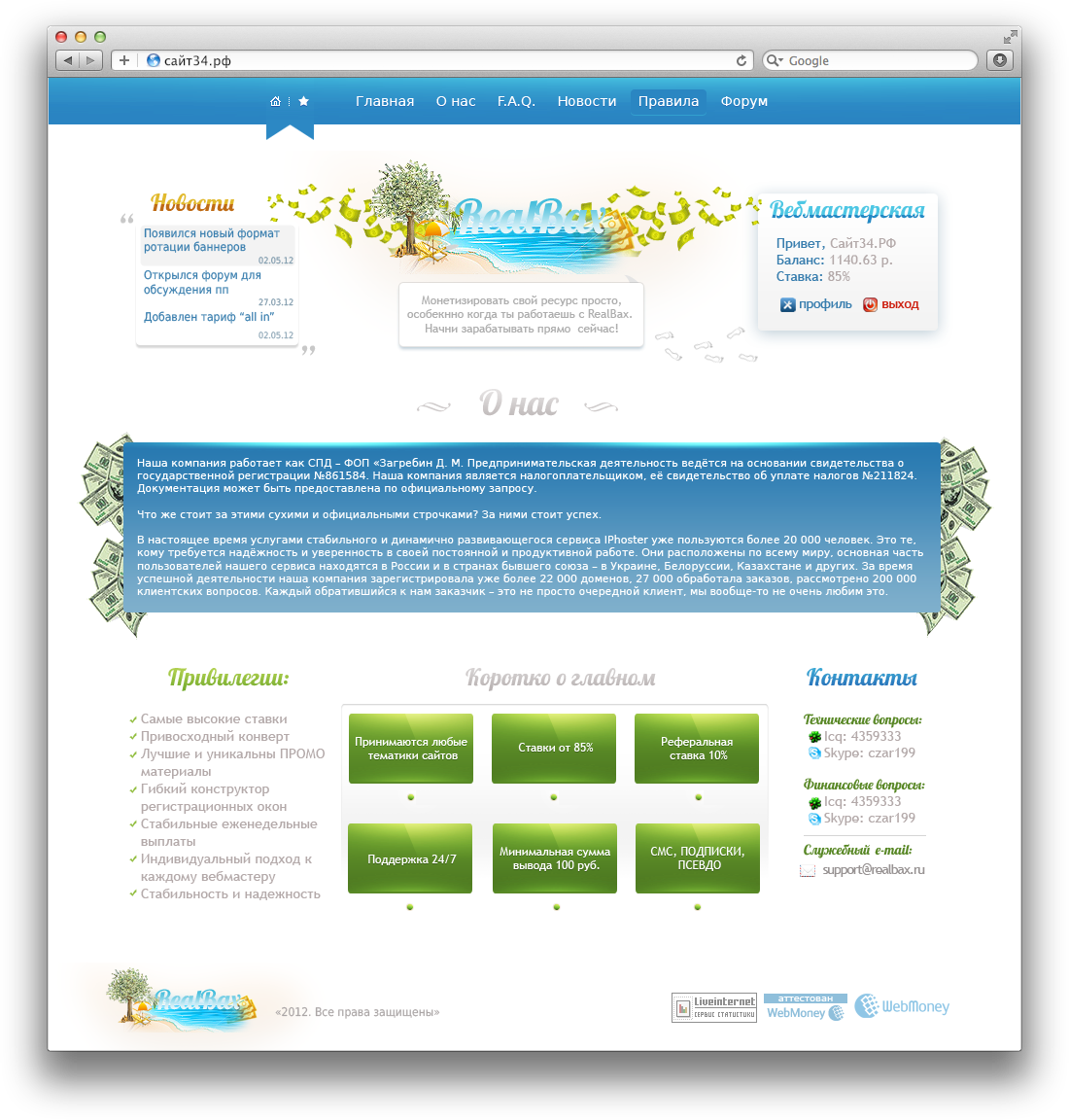 Разработка дизайна для партнерской программы "RealBax"