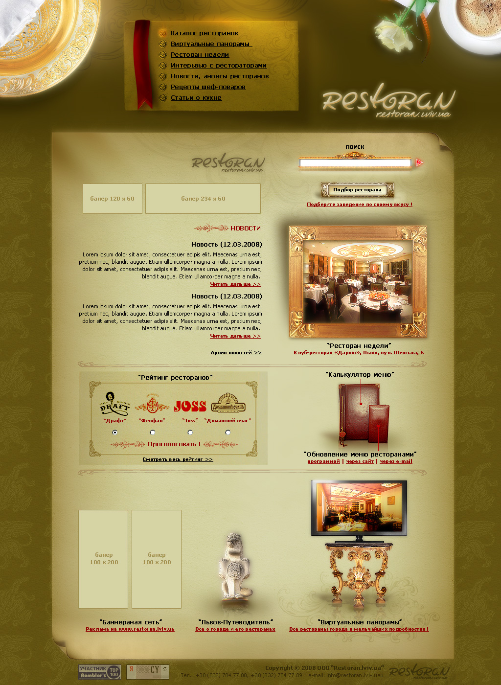 http://www.restoran.lviv.ua Проект-навигатор по ресторанам Львова.