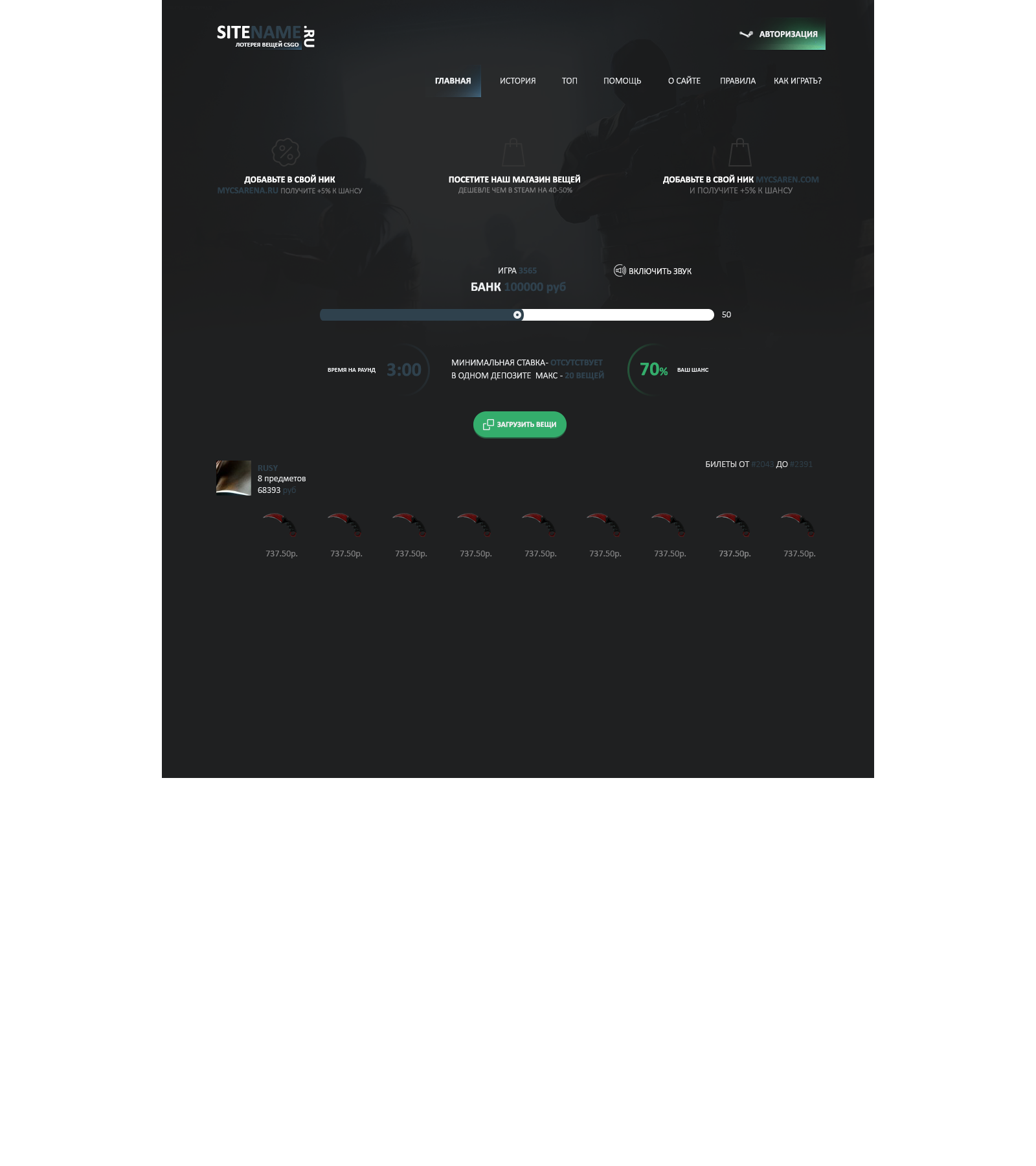 Стильный дизайн рулетки CS:GO.