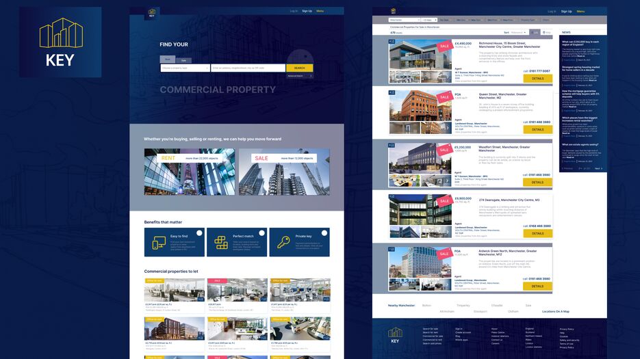 Сайт для клиентов и брокеров Великобритании, где первые могут найти необходимые объекты, а вторые разместить и прорекламировать.