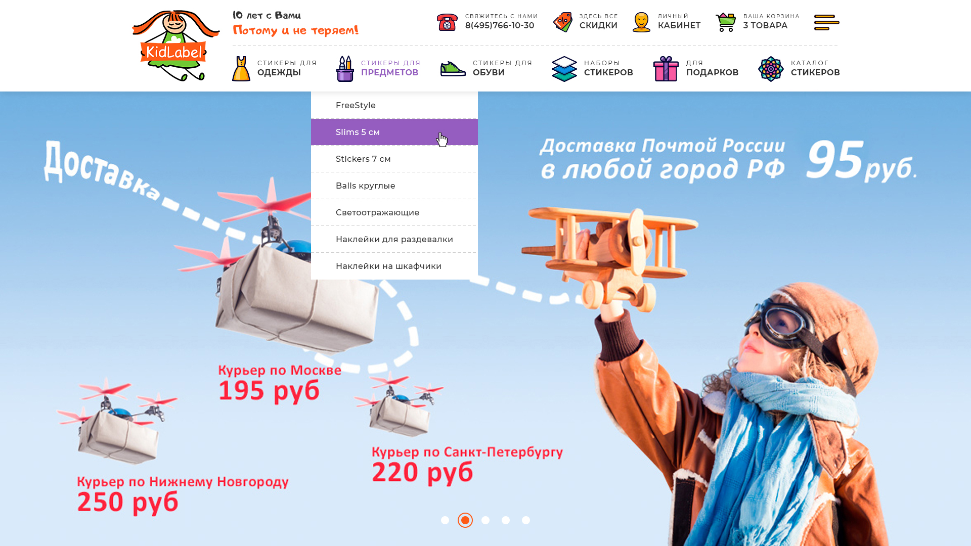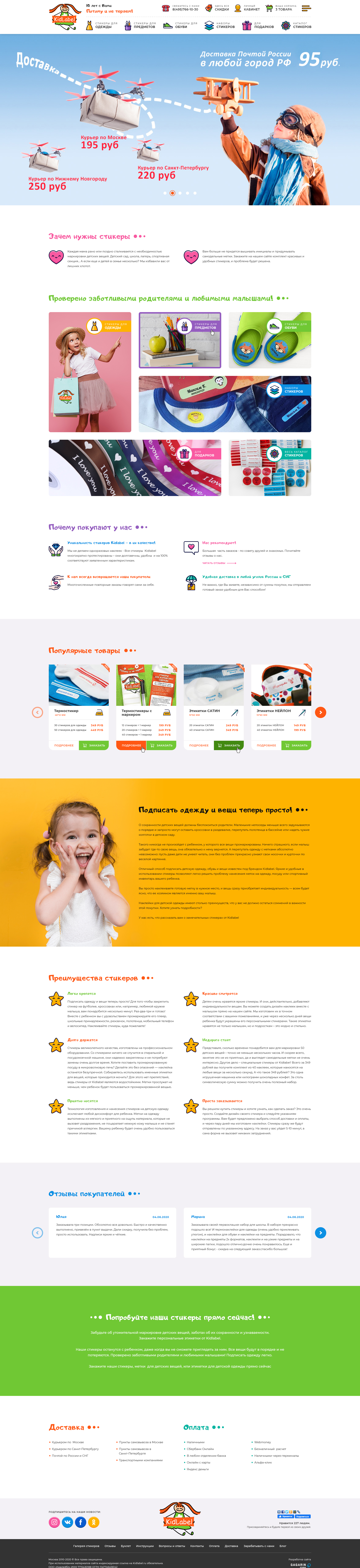 Сайт по продаже стикеров для детей