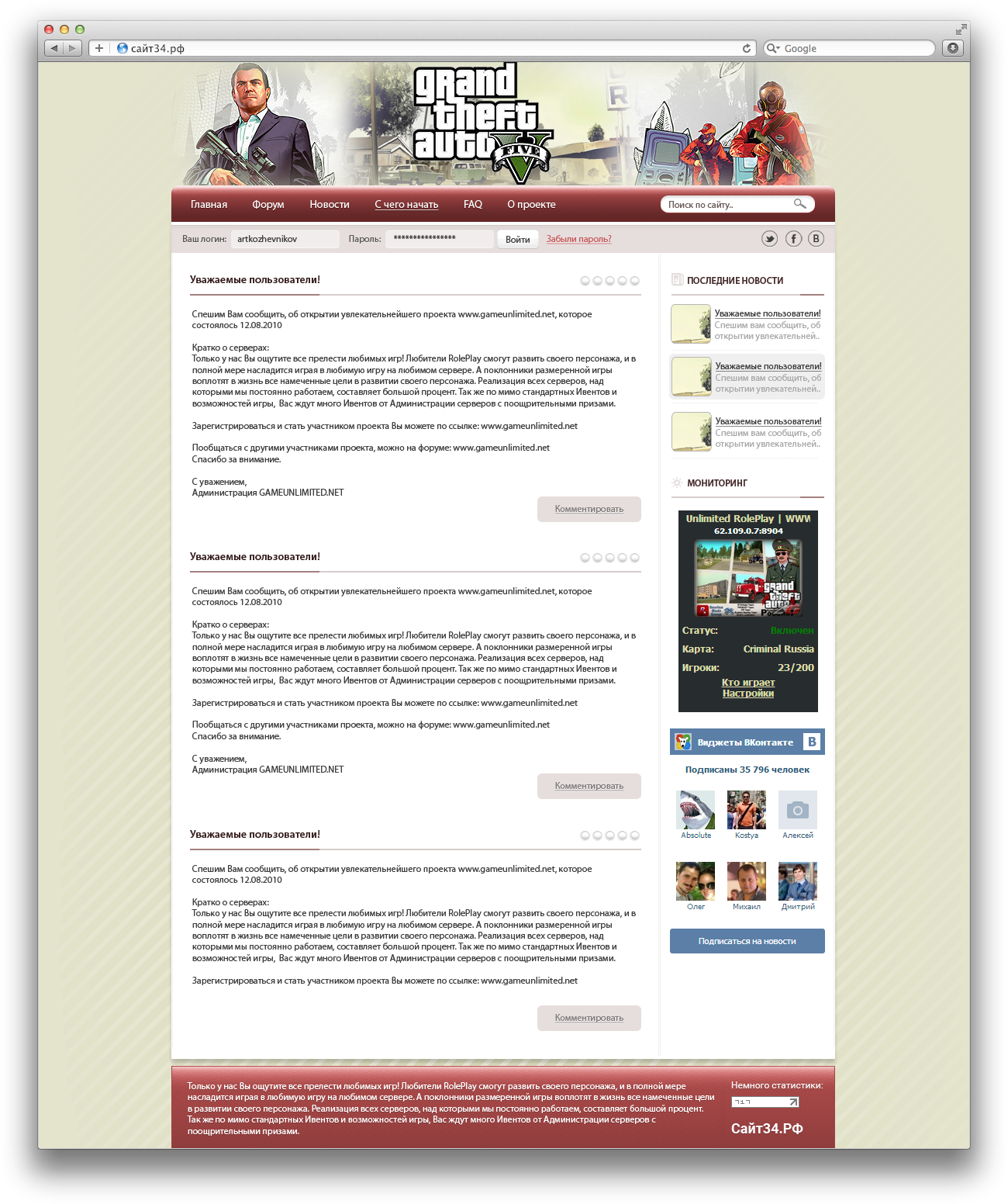 Дизайн для сайта сети игровых серверов Gameunlimited