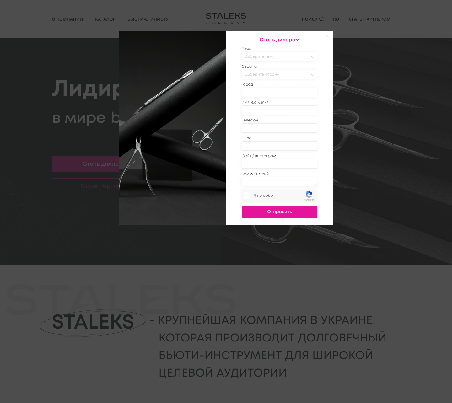 Website page design for Staleks company