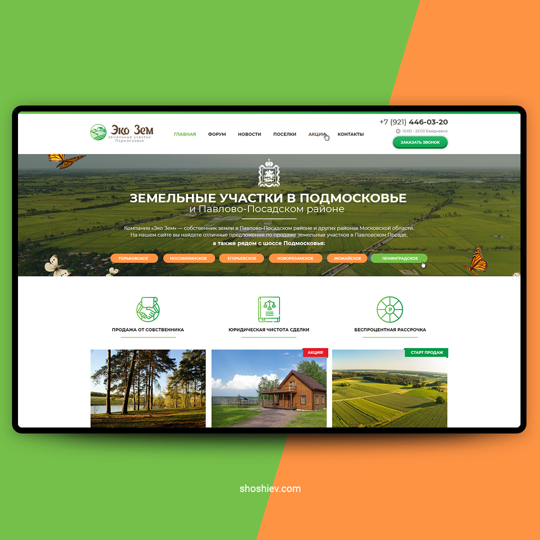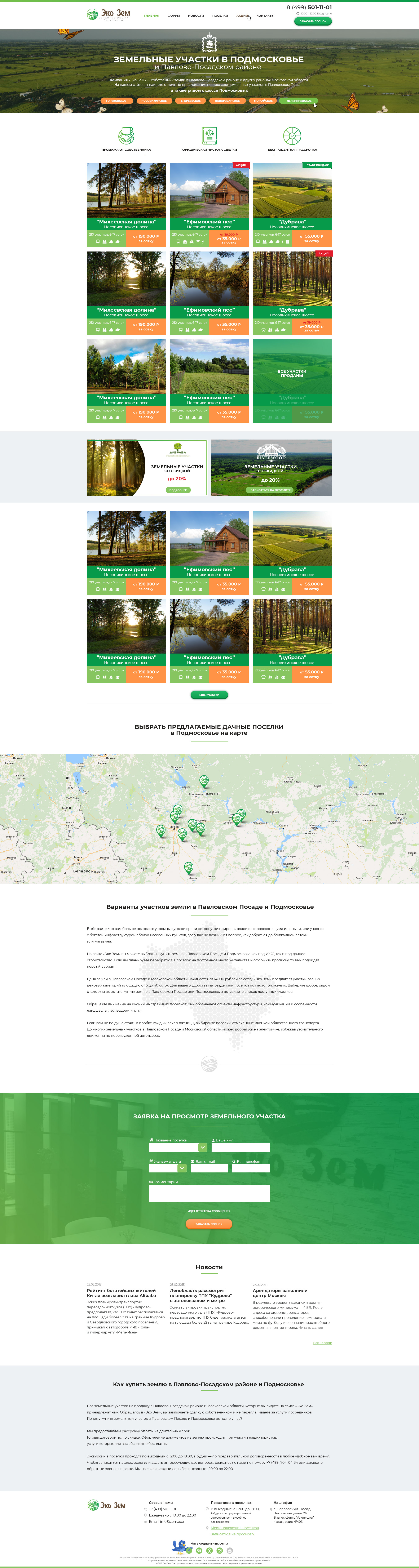 Земельные участки Подмосковья "ЭкоЗем" дизайн и верстка
