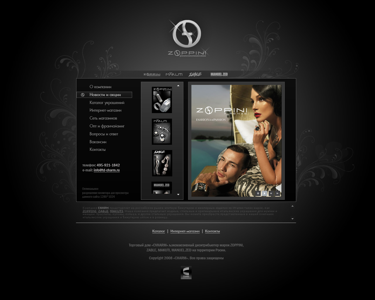 http://www.td-charm.ru/ Торговый дом CHARM представляет на российском рынке стильную бижутерию и ювелирные изделия из Италии таких марок, как ZOPPINI, ZABLE, MAKUTI, MANUEL.ZED.