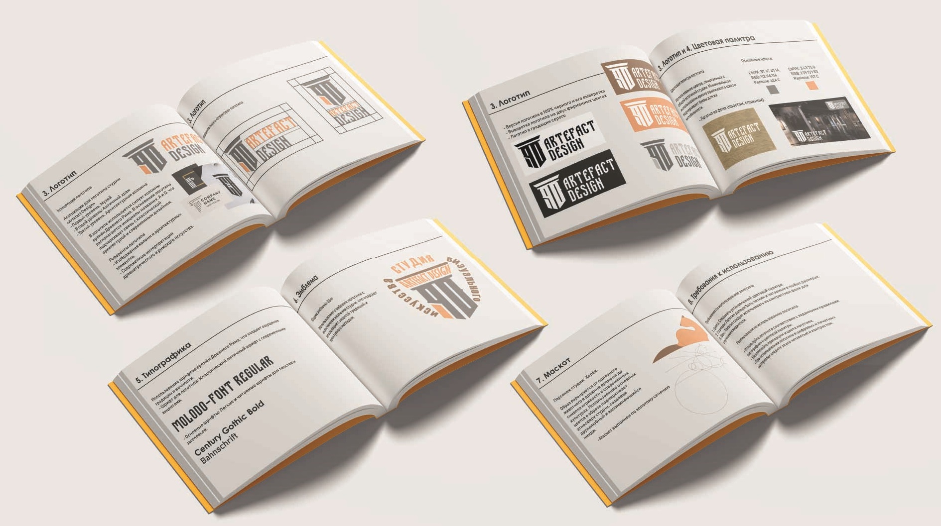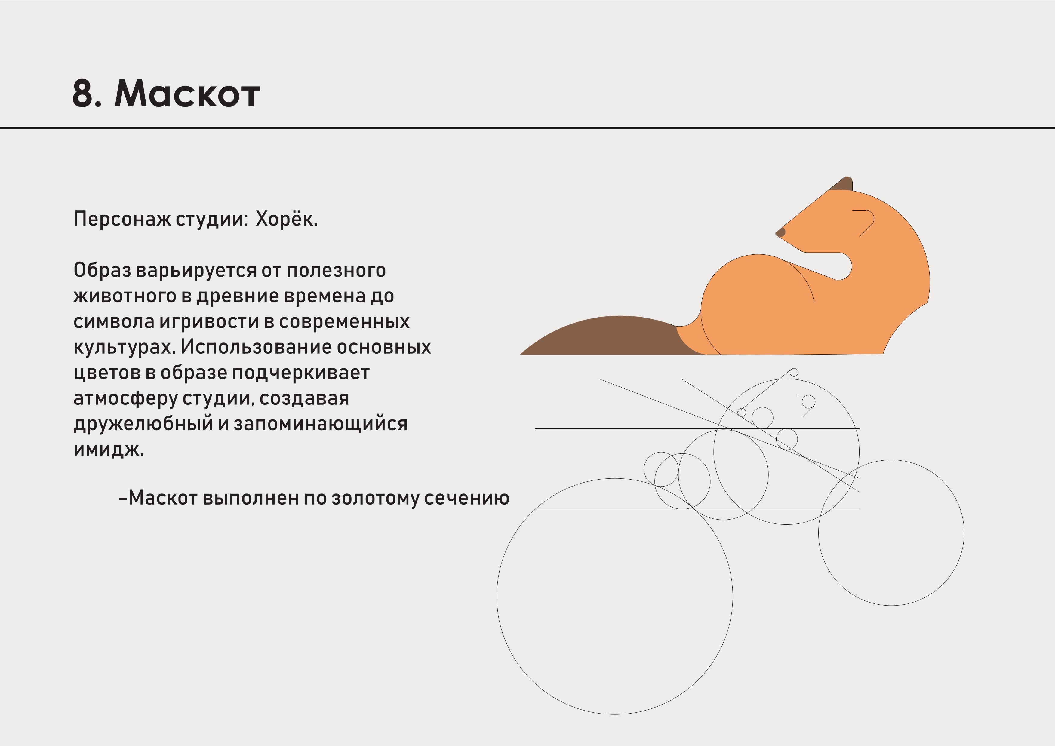 данная задача работы состояла в том, чтобы создание логoбука для студии. константы визуала вы можете увидеть выше, они состоят из презентации разработки: фирстиля, логотипа и правила его использования, персонажа для студии, эмблема, полиграфия и типография бренда