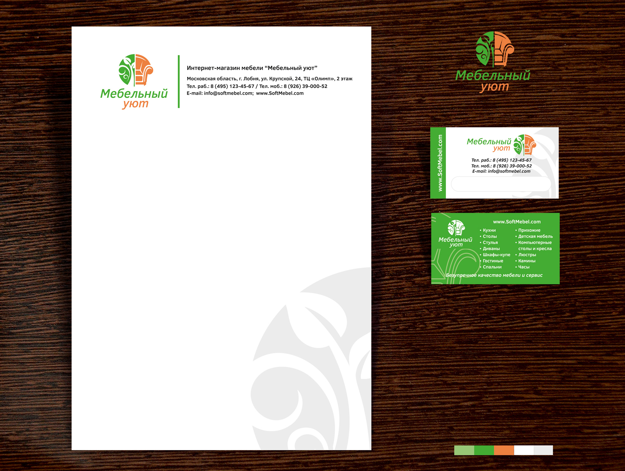 Создание логотипа, фирменного бланка и визитки (две стороны) - стиль бренда компании "Мебельный уют".