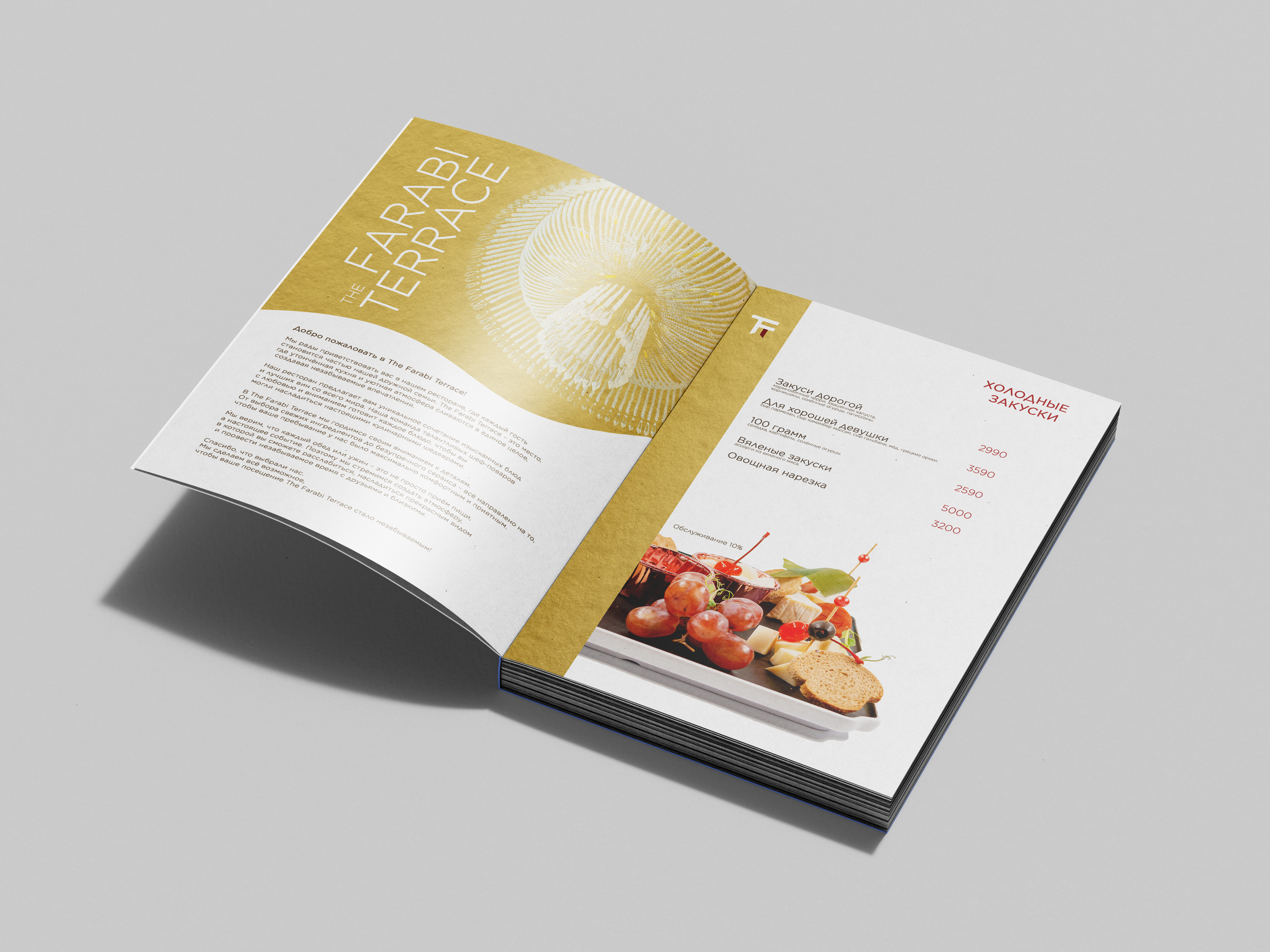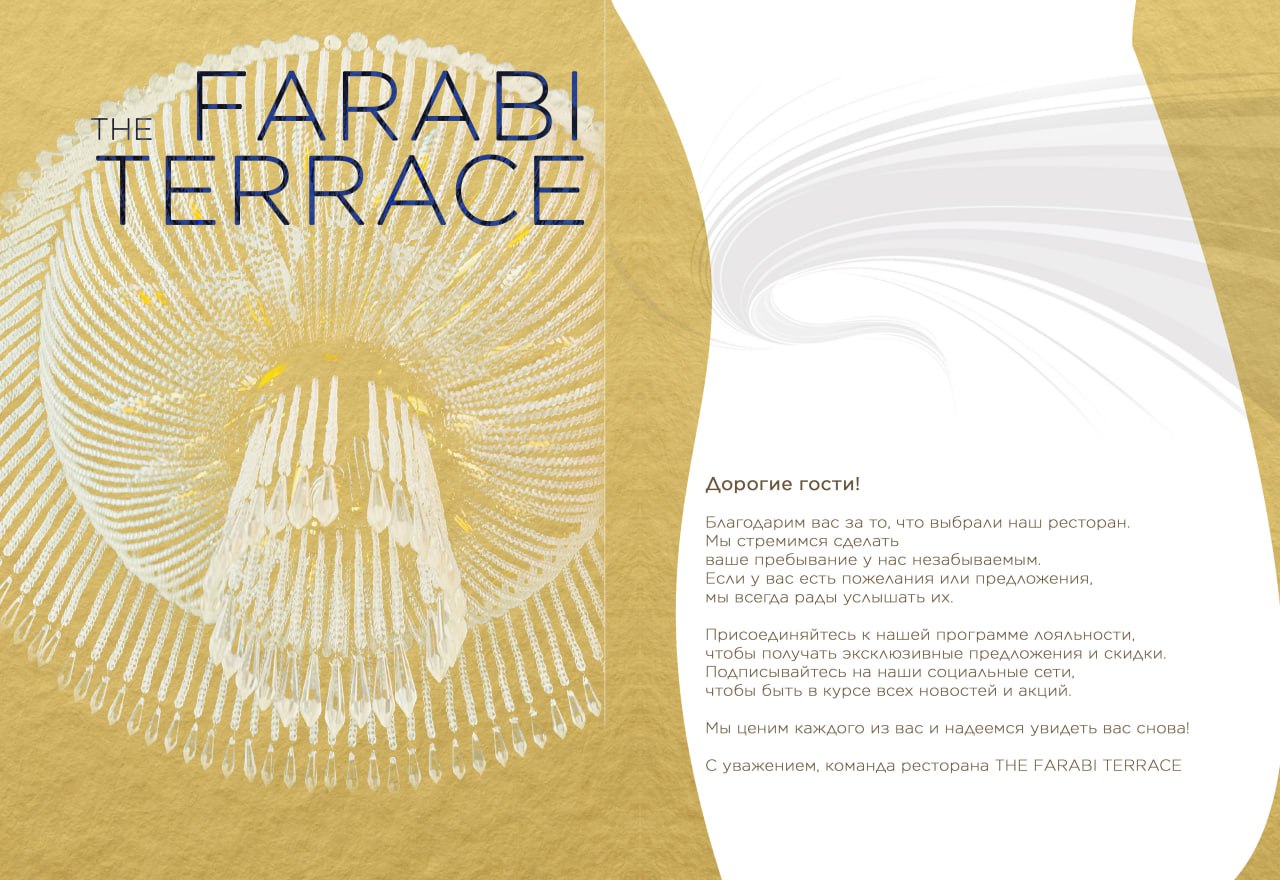 Фирменный стиль: разработка меню для ресторана The Farabi Terrace