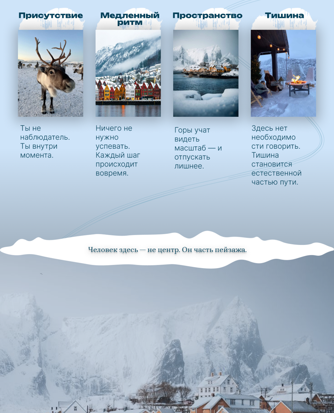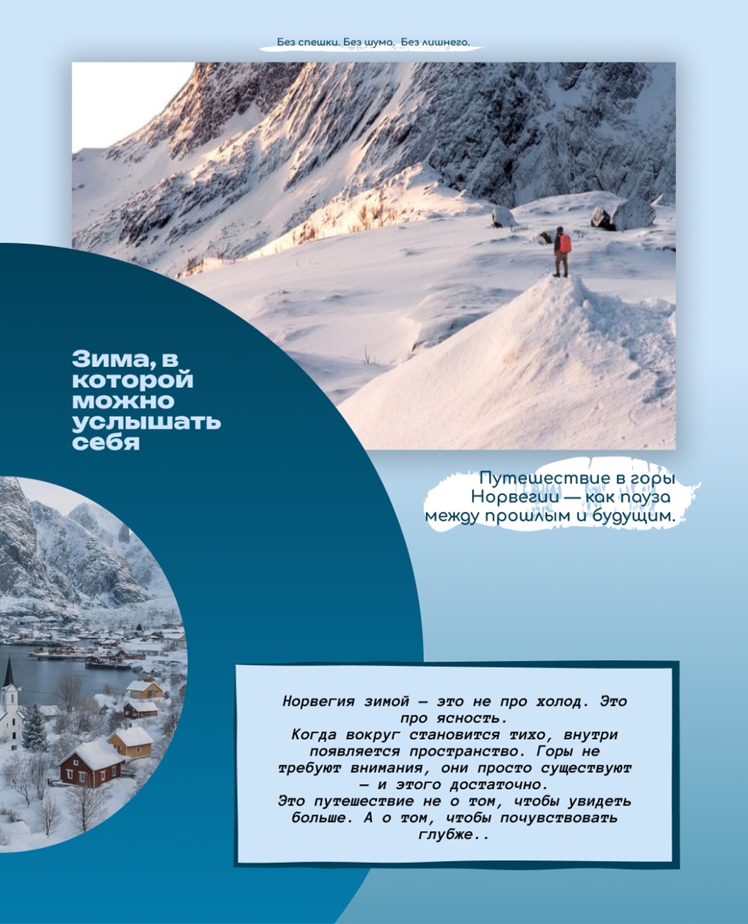 Концепт-сайт для авторских зимних путешествий в горы Норвегии.