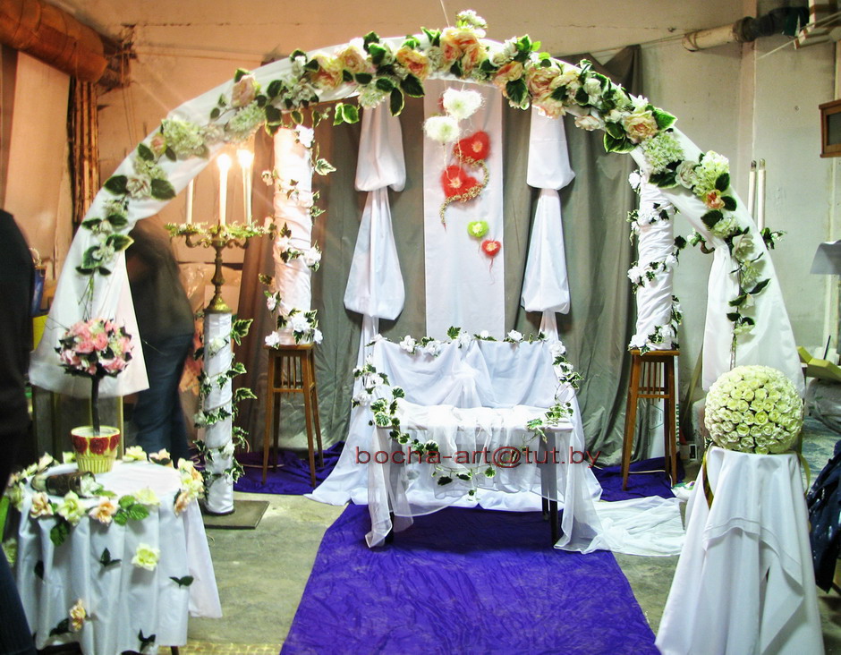 Украшение зала живыми и искусственными цветами