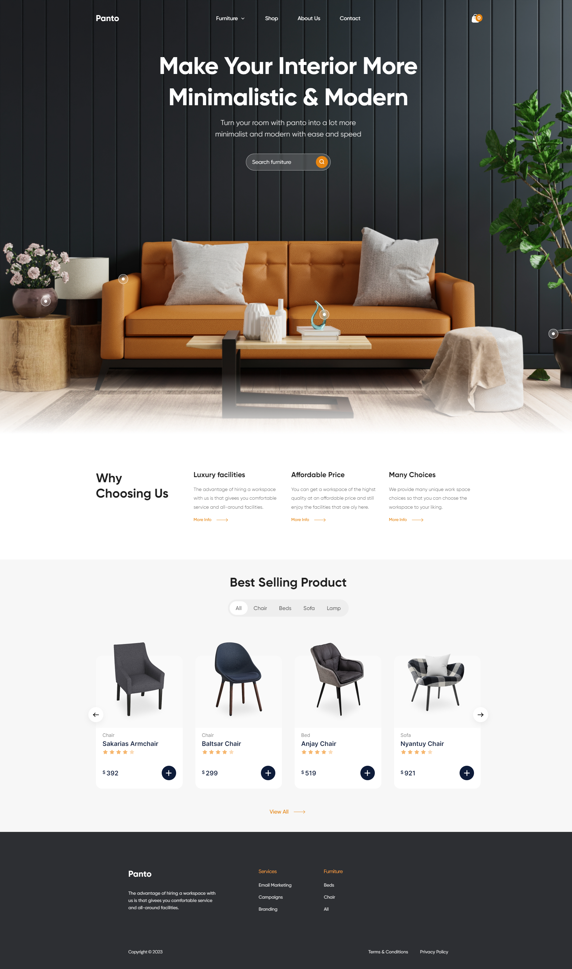 Адаптивна верстка сайту Panto інтернет-магазину меблів
