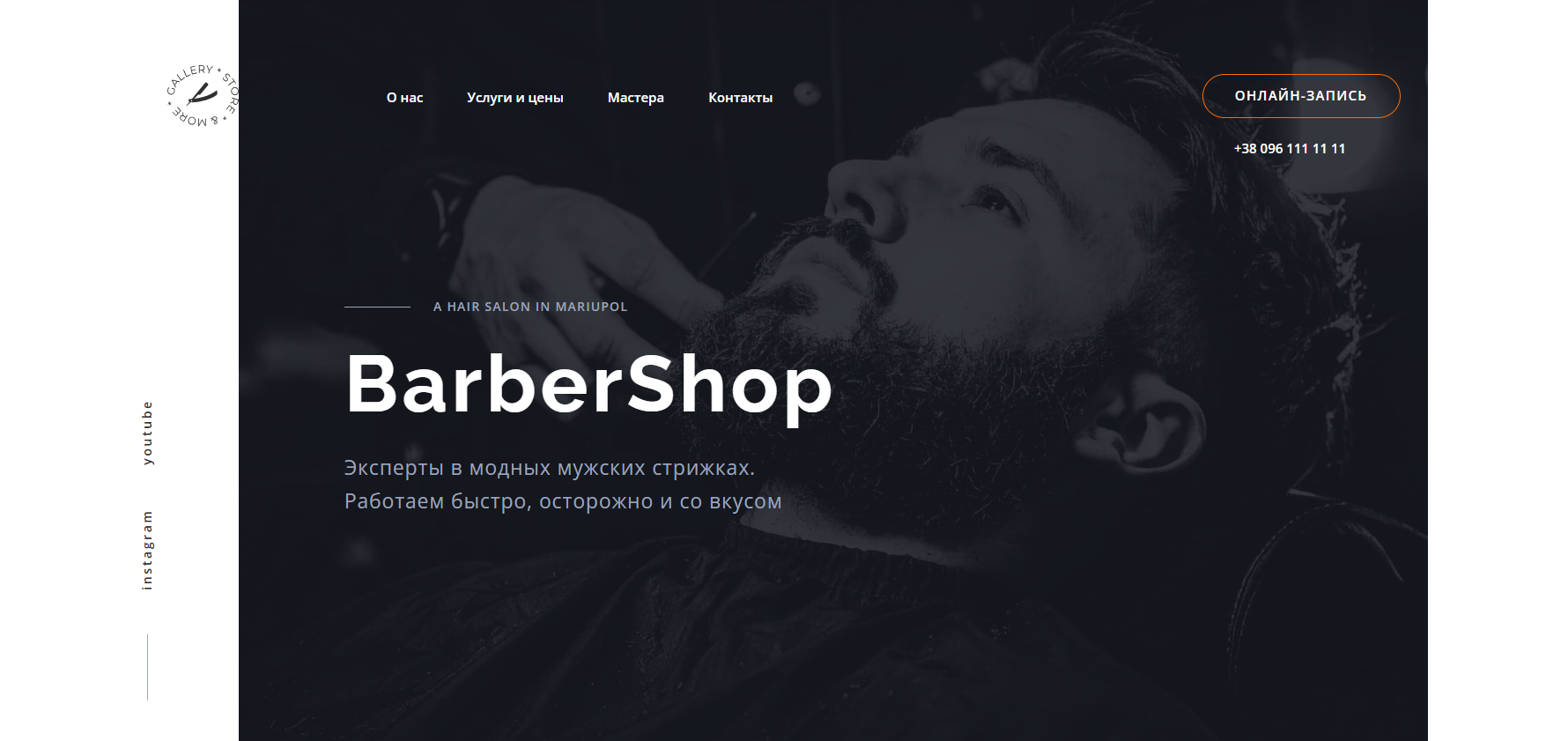 Современный адаптивный сайт барбершопа с интерактивом и фокусом на пользовательский опыт.