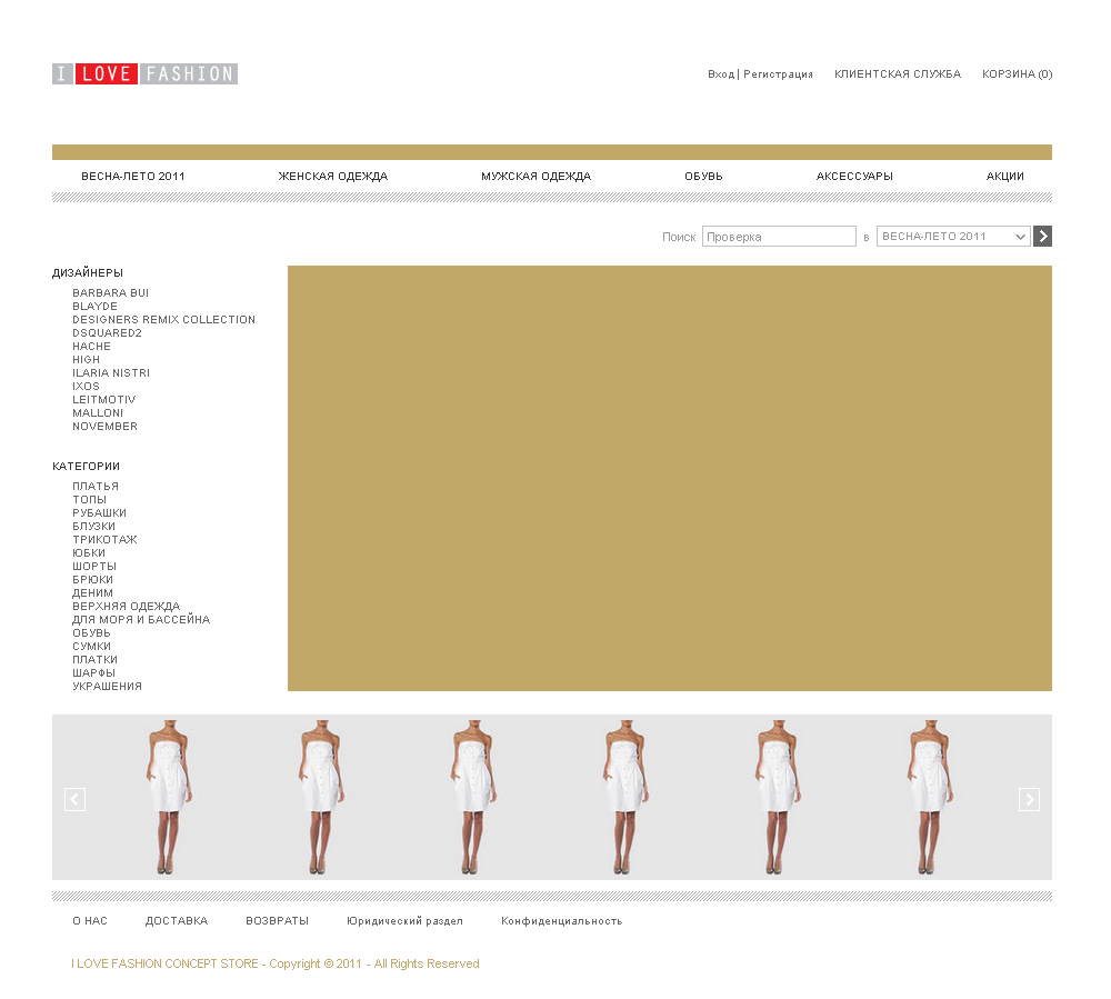 http://www.ilovefashion.ru/ Верстка 3-х страниц (XHTML 1.0 | CSS 2.1 | JQuery)