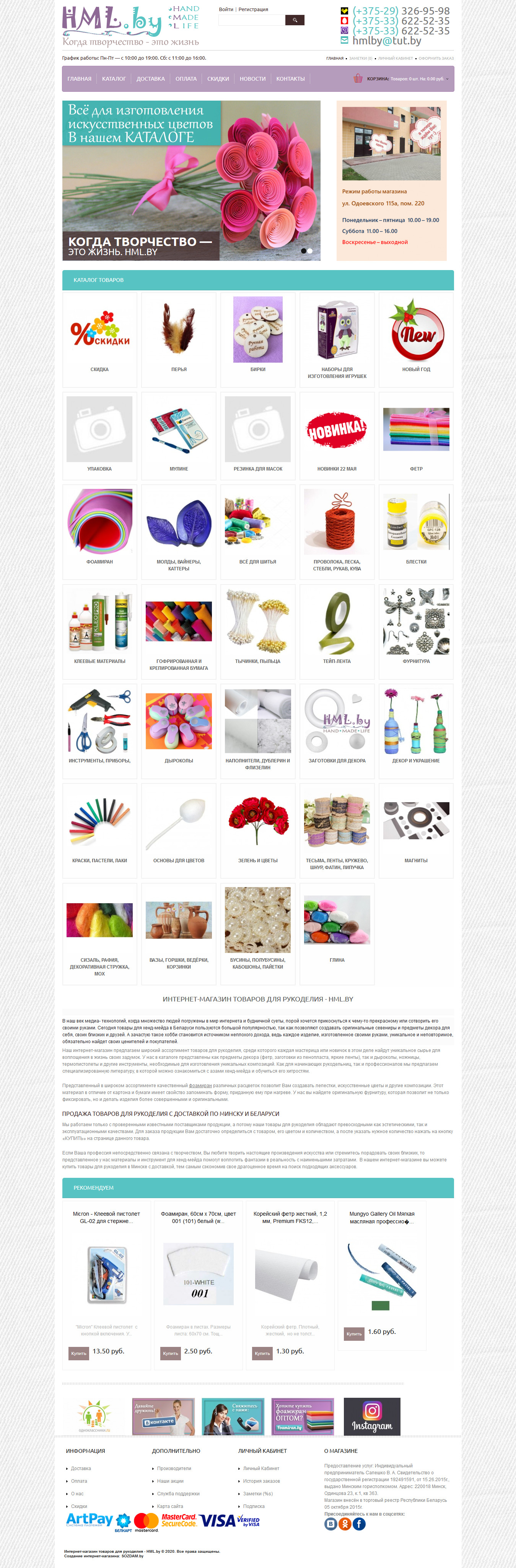 Адаптивная вёрстка из макета Figma интернет-магазина товаров для хендмейда hml.by, 2020 год