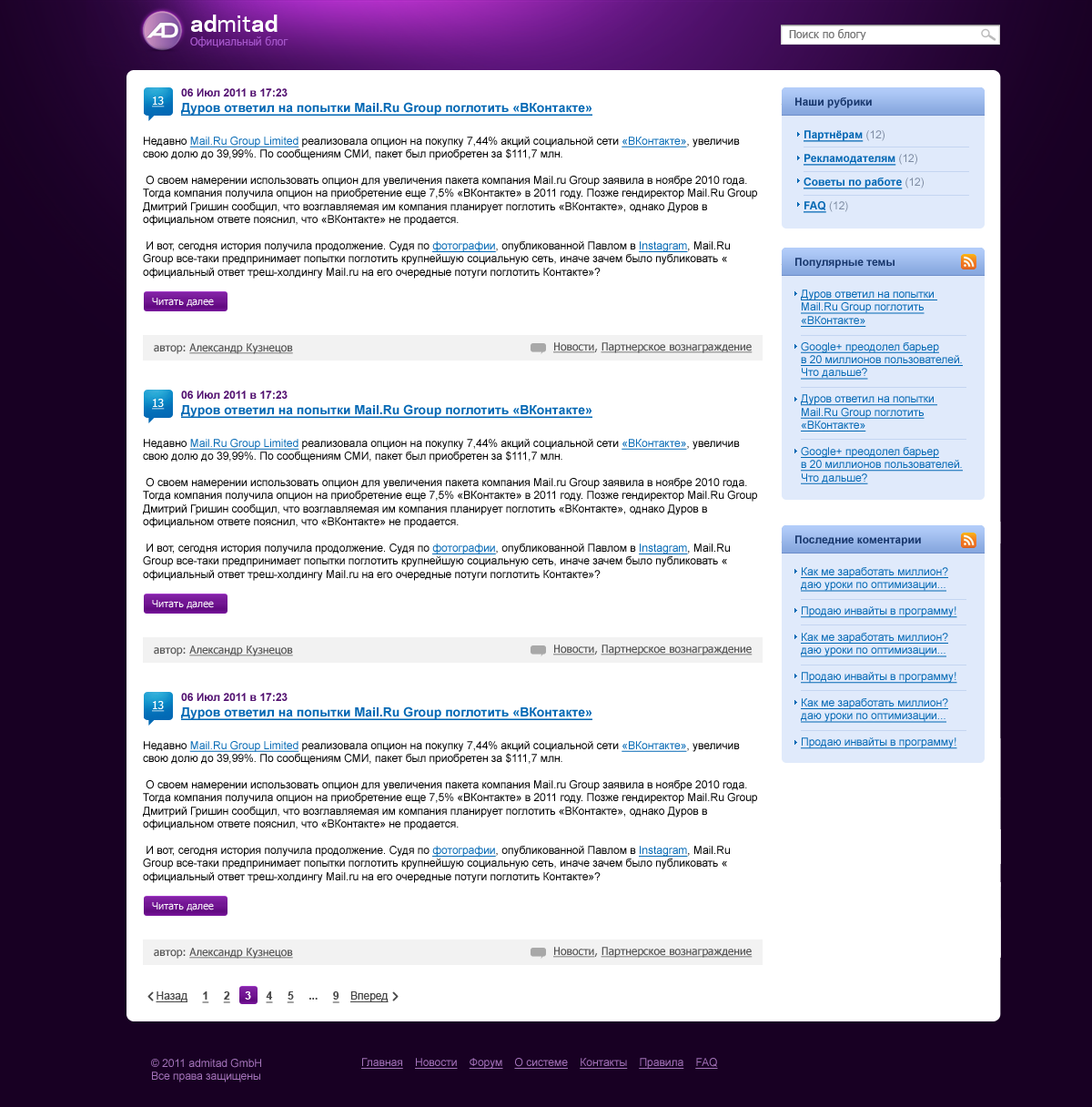 http://blog.admitad.com/ Верстка и натяжка на WordPress 3