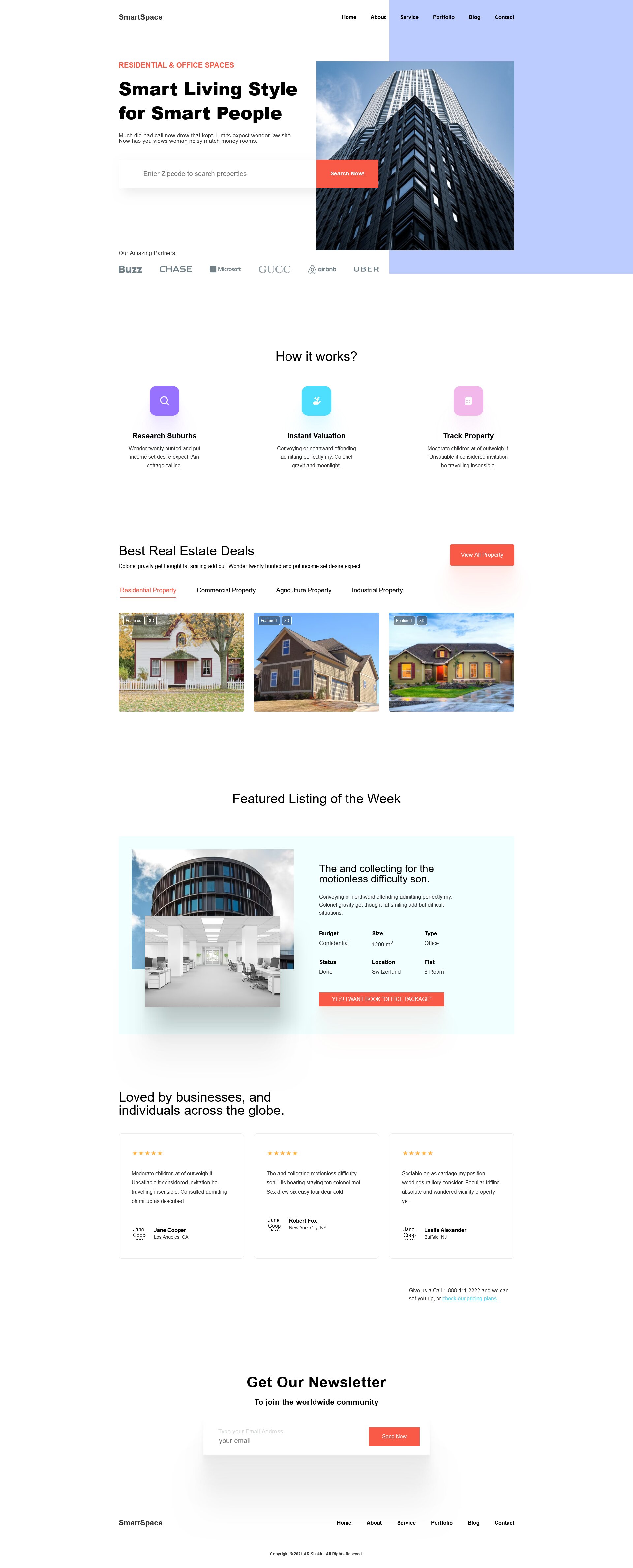 Сучасний лендинг для агентства нерухомості "SmartSpace".