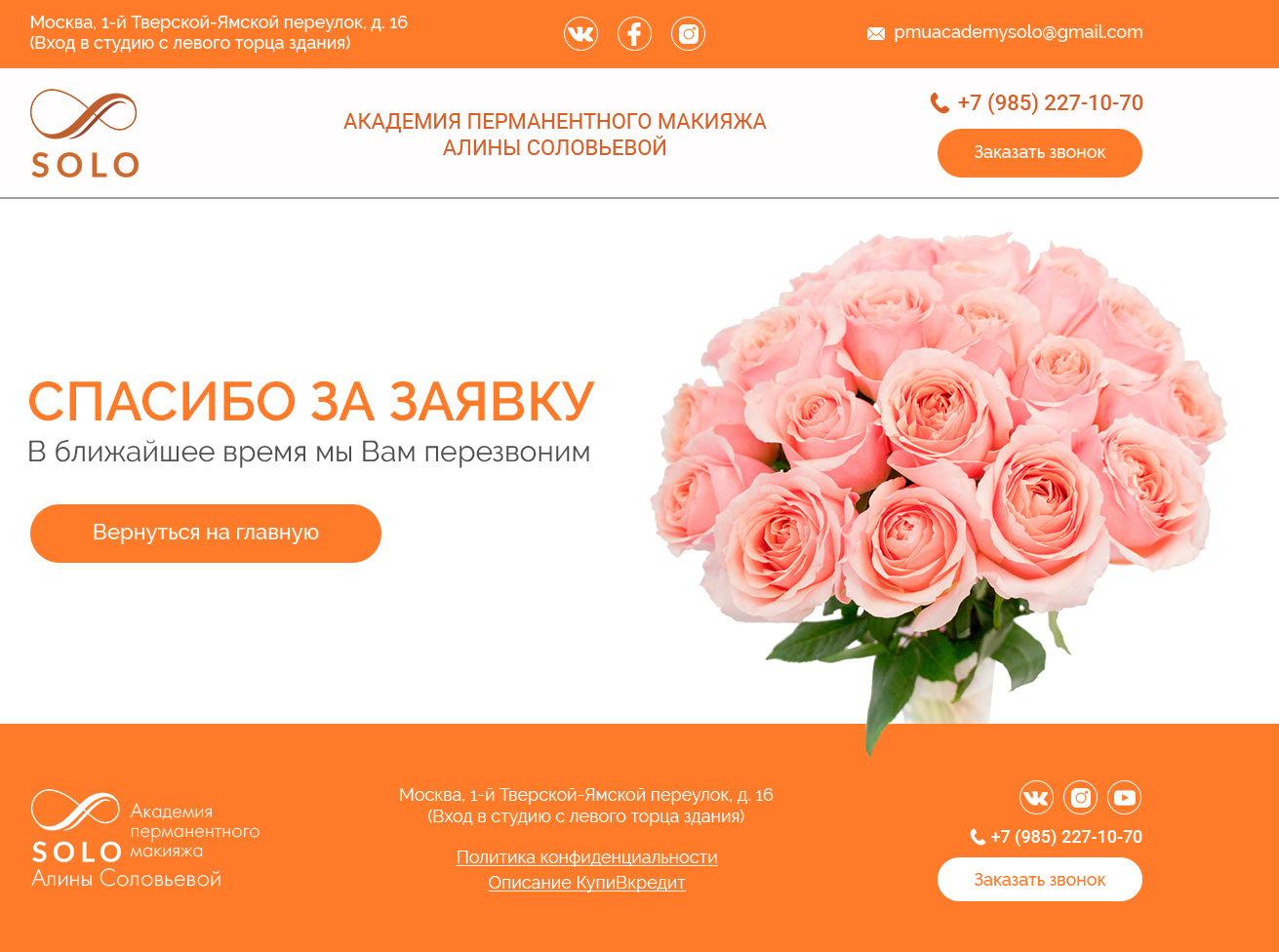 Верстка landing page «Aкадемия макияжа Solo»