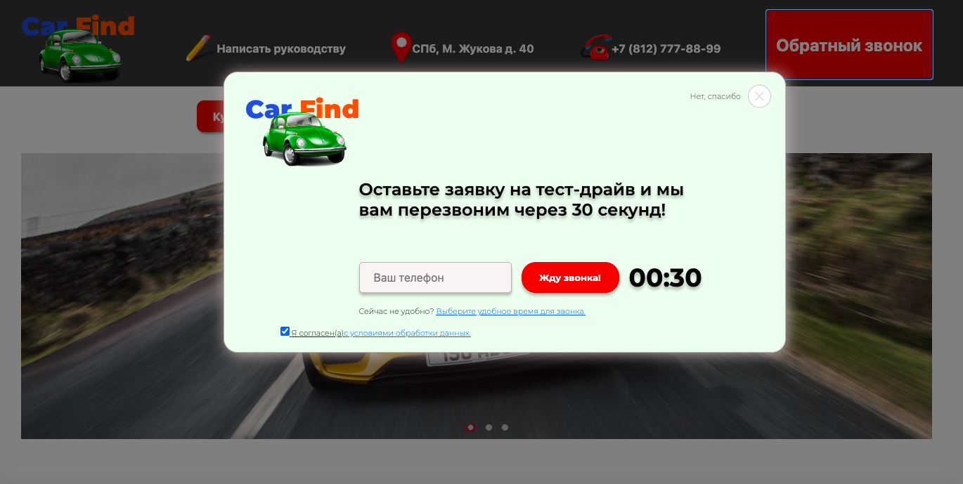 Верстка сайта автосалона