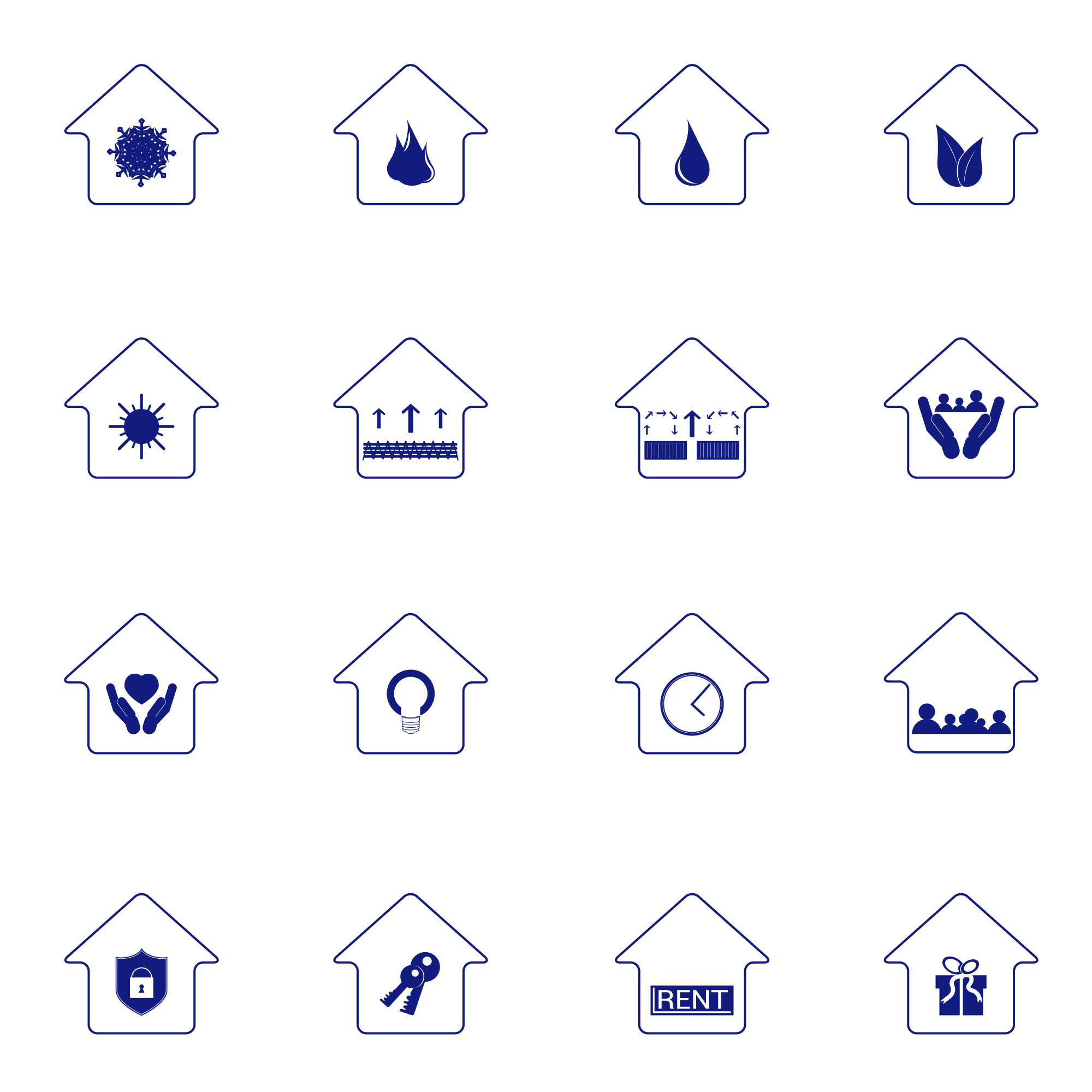 Иконки дом. Отопление, газ, вода, аренда, охрана, уют...